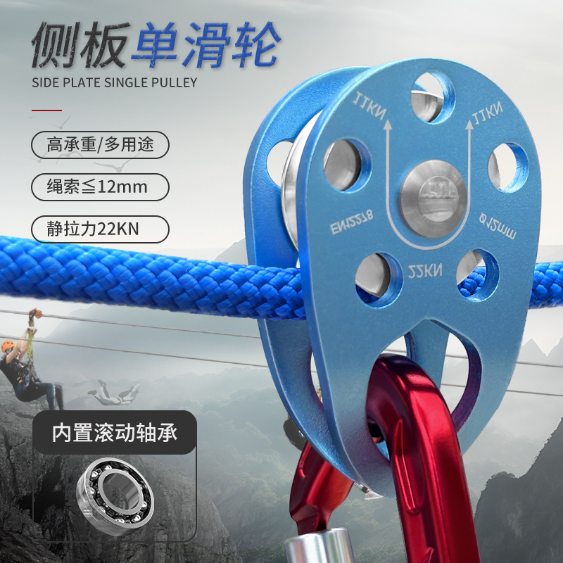 | nameOriginal | Factory direct 22KN aluminum alloy side plate fixed roller bearing single pulley high load-bearing multi-purpose outdoor hoisting |