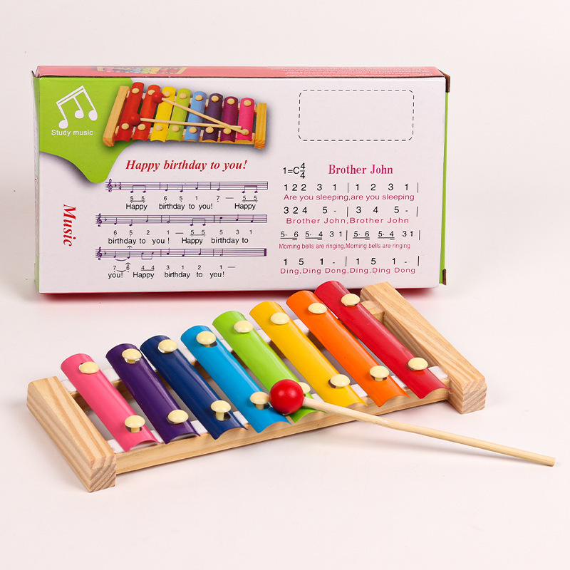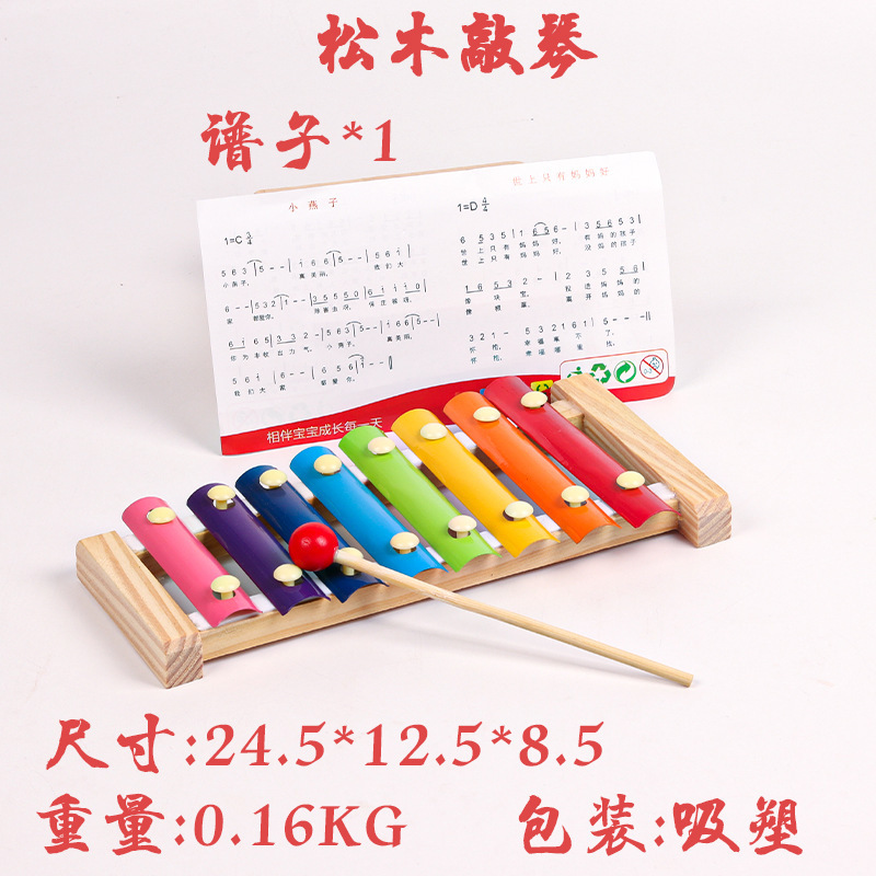 Factory direct baby children's wooden eight-tone accordion early education baby toys 1-2-3 years old wooden solid wood