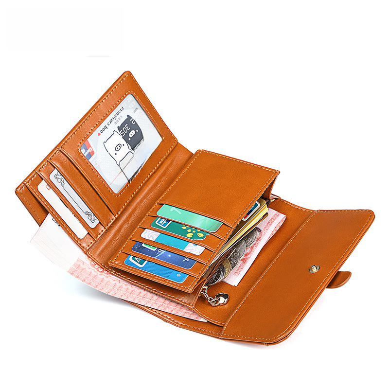 Factory direct Banyanu Korean version of the new wallet women's short three fold retro oil wax leather buckle small change clip