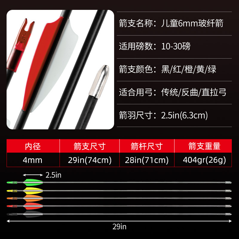 | nameOriginal | Factory direct children's 6mm glass fiber arrow arc-shaped ton arrow recurve bow straight-pull bow available arrow museum bow equipment |