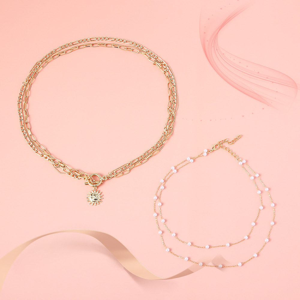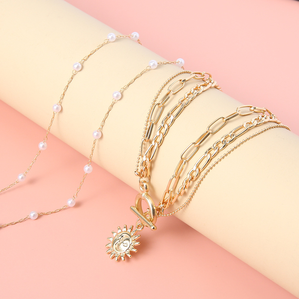 Factory direct cross-border ins New Sun Pearl multilayer necklace
