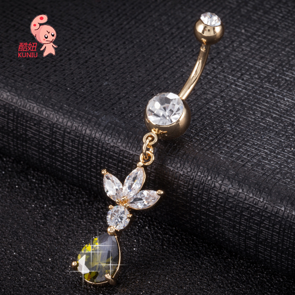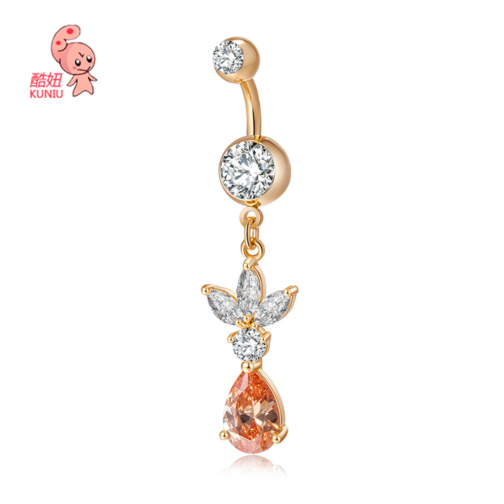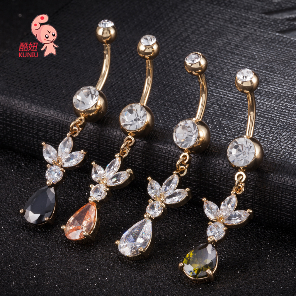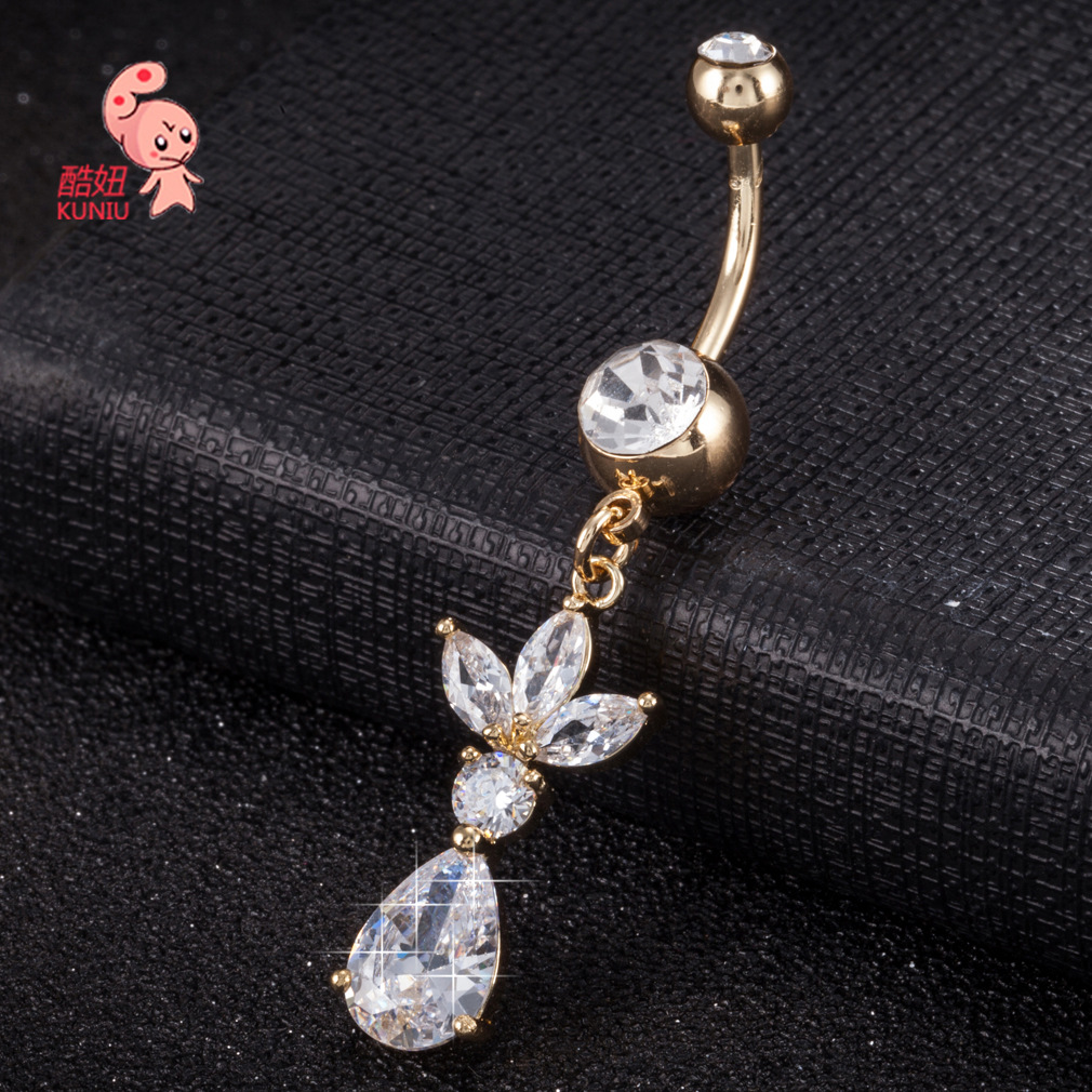 | nameOriginal | Factory direct cute petal decoration exquisite water droplets zircon navel ring human body piercing navel ornaments wholesale |