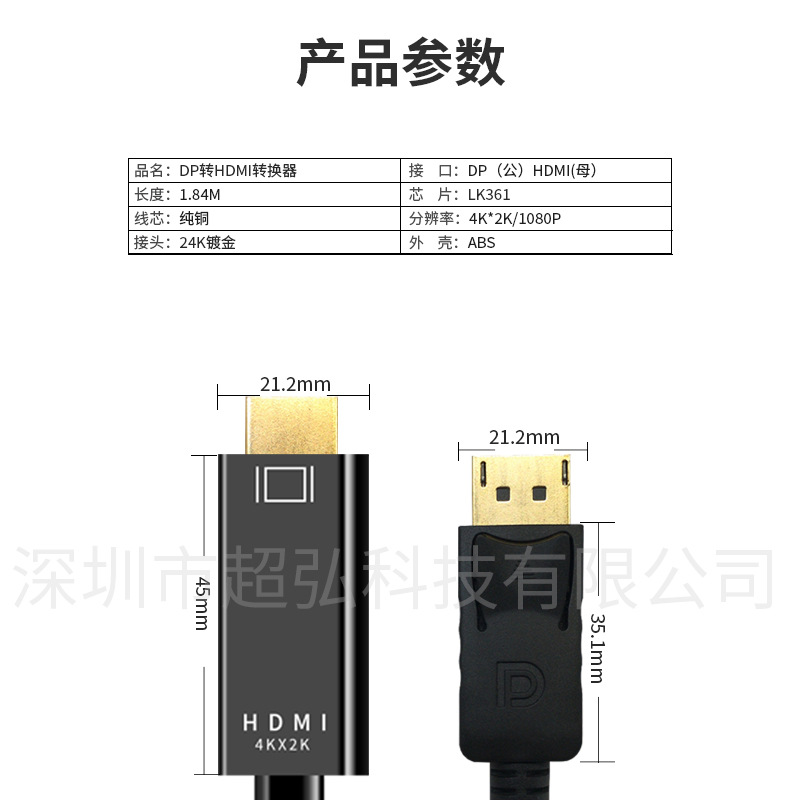 Factory direct DP TO HDMI 1.8m cable adapter large DP TO HDMI 1.8M 4k * 2k