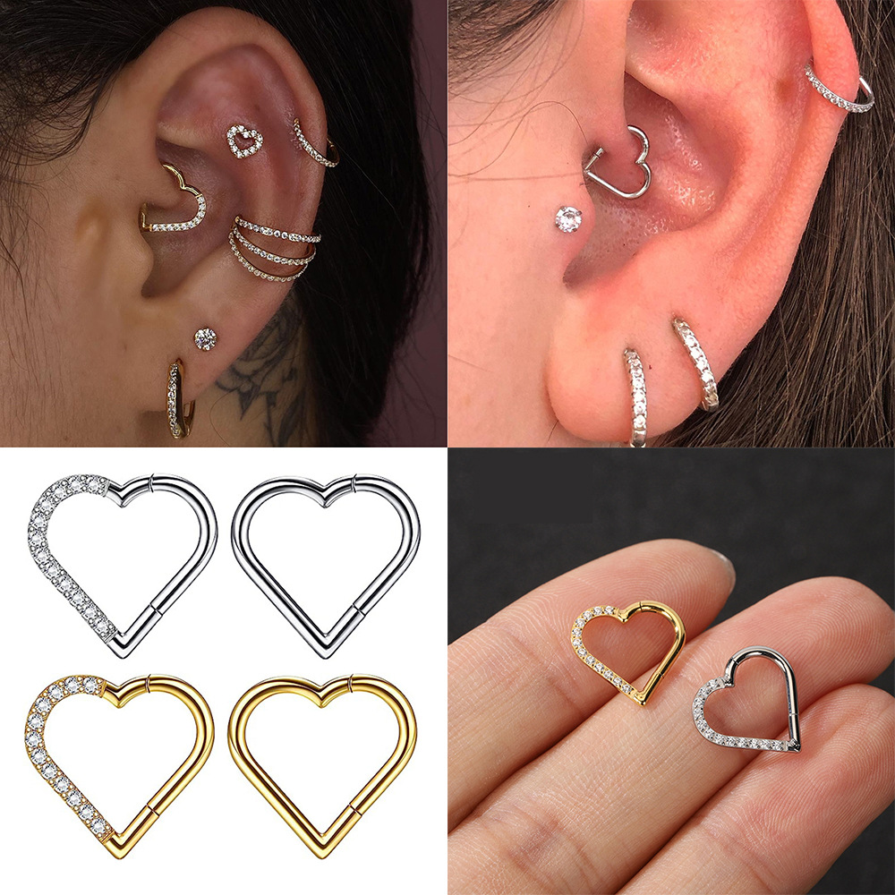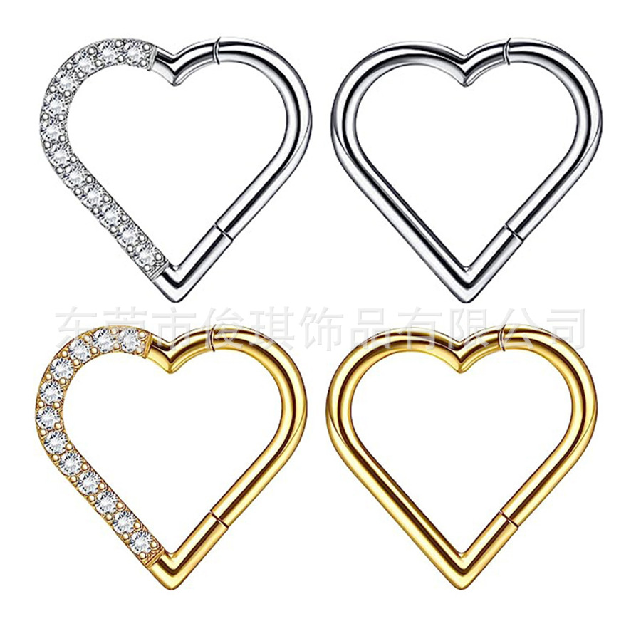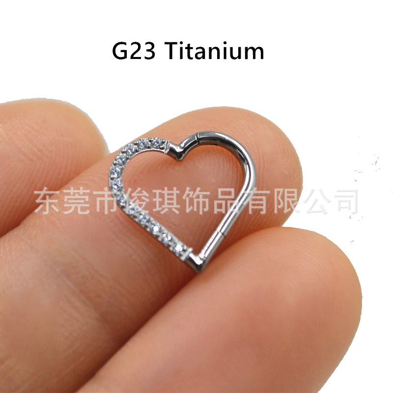 | nameOriginal | Factory direct G23 titanium alloy heart-shaped stone-set nose ring love earrings ear cartilage ring seamless heart pin-free ring |