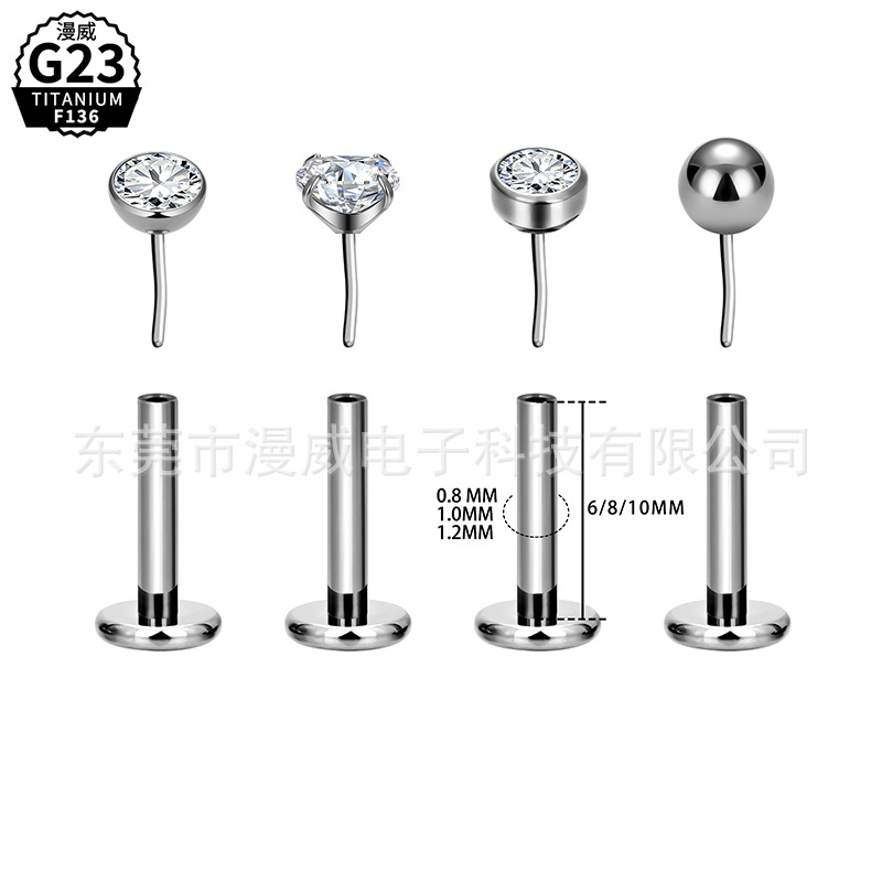 Factory direct G23 titanium alloy puncture jewelry bowl pin nose nail ear bone nail body implant grade F136 titanium