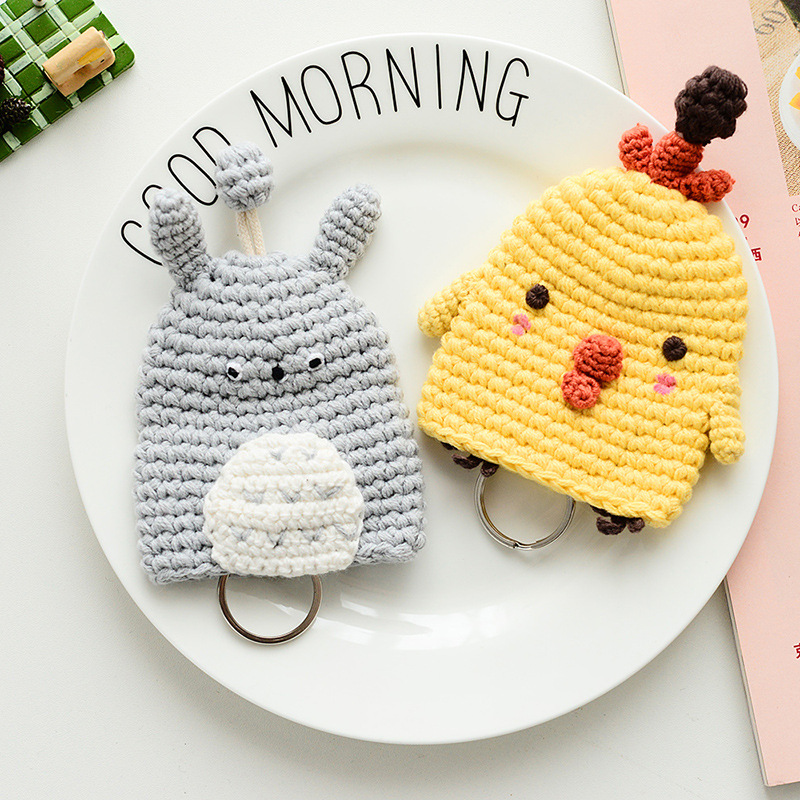 Factory direct hand-woven key protective cover Pig cartoon wool knitted cute car key bag
