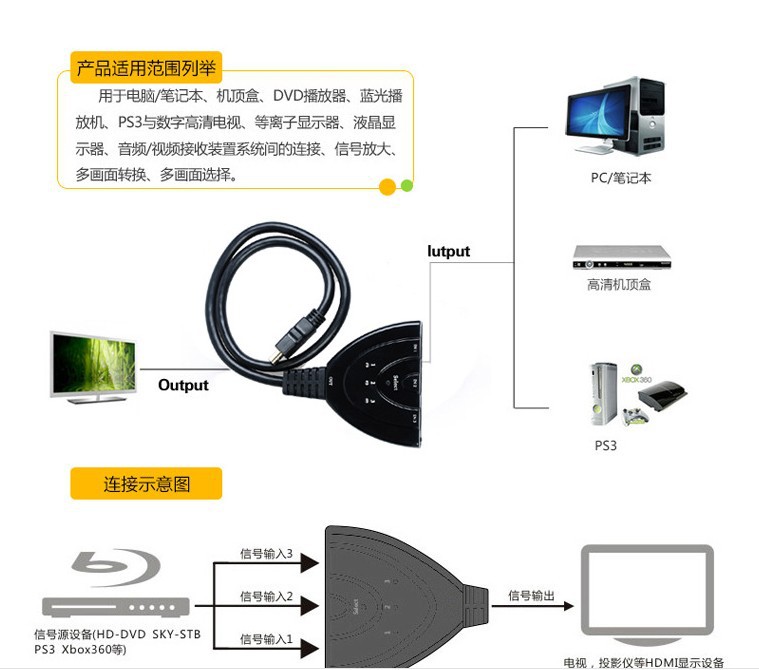 Factory direct HDMI 1-3hdmi to 3hdmif HD line 1 in 3 out conversion line quality assurance