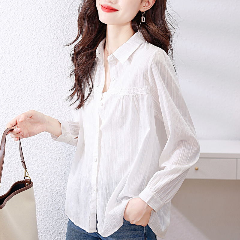 | nameOriginal | Factory direct lace stitching white shirt women's long sleeve 2024 spring new shirt commuter temperament top |