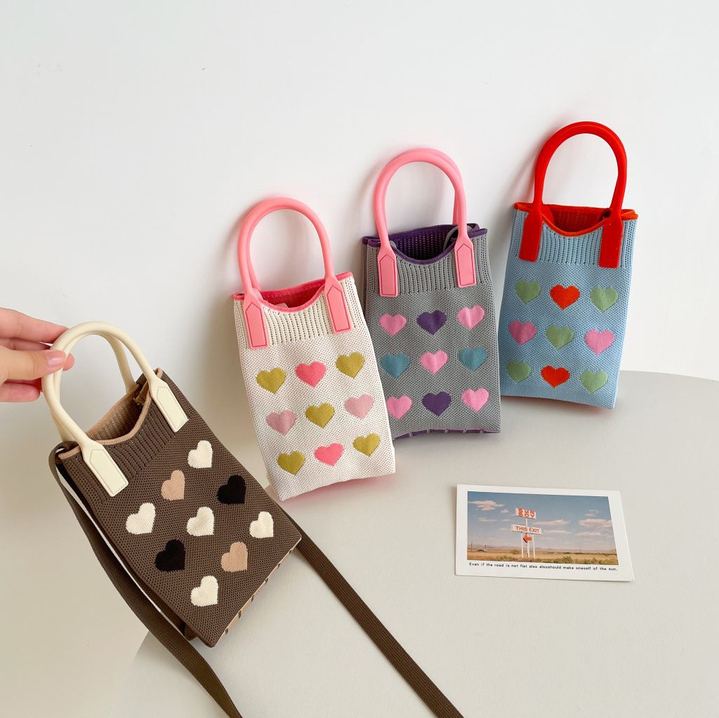 | nameOriginal | Factory Direct love contrast color knitted portable coin purse portable storage shoulder bag wool phone bag |