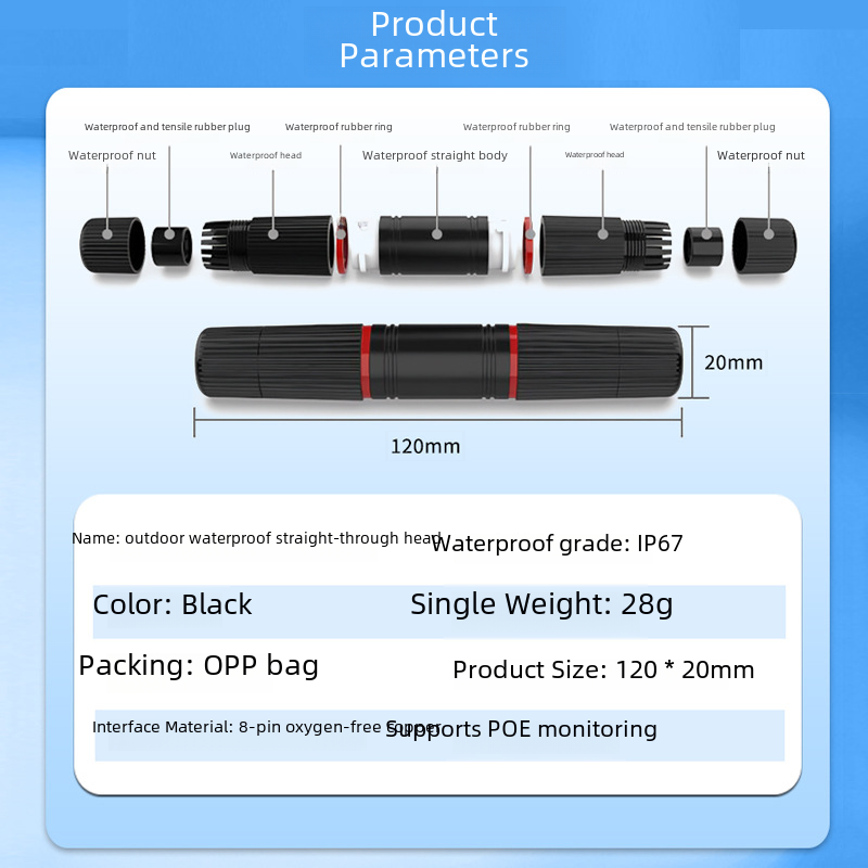 | nameOriginal | Factory direct network cable connector outdoor waterproof network straight-through head RJ45 straight-through head network cable connection extender |