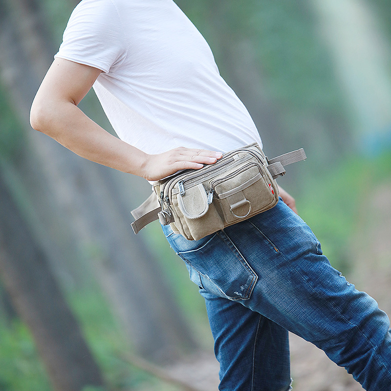 Factory Direct New Waist Bag Men’s Multifunctional Large Capacity Canvas Waist Bag Sports Casual Crossbody Chest Bag