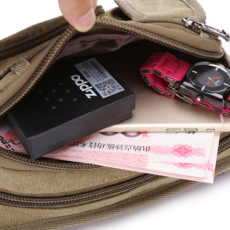 Factory Direct New Waist Bag Men's Multifunctional Large Capacity Canvas Waist Bag Sports Casual Crossbody Chest Bag