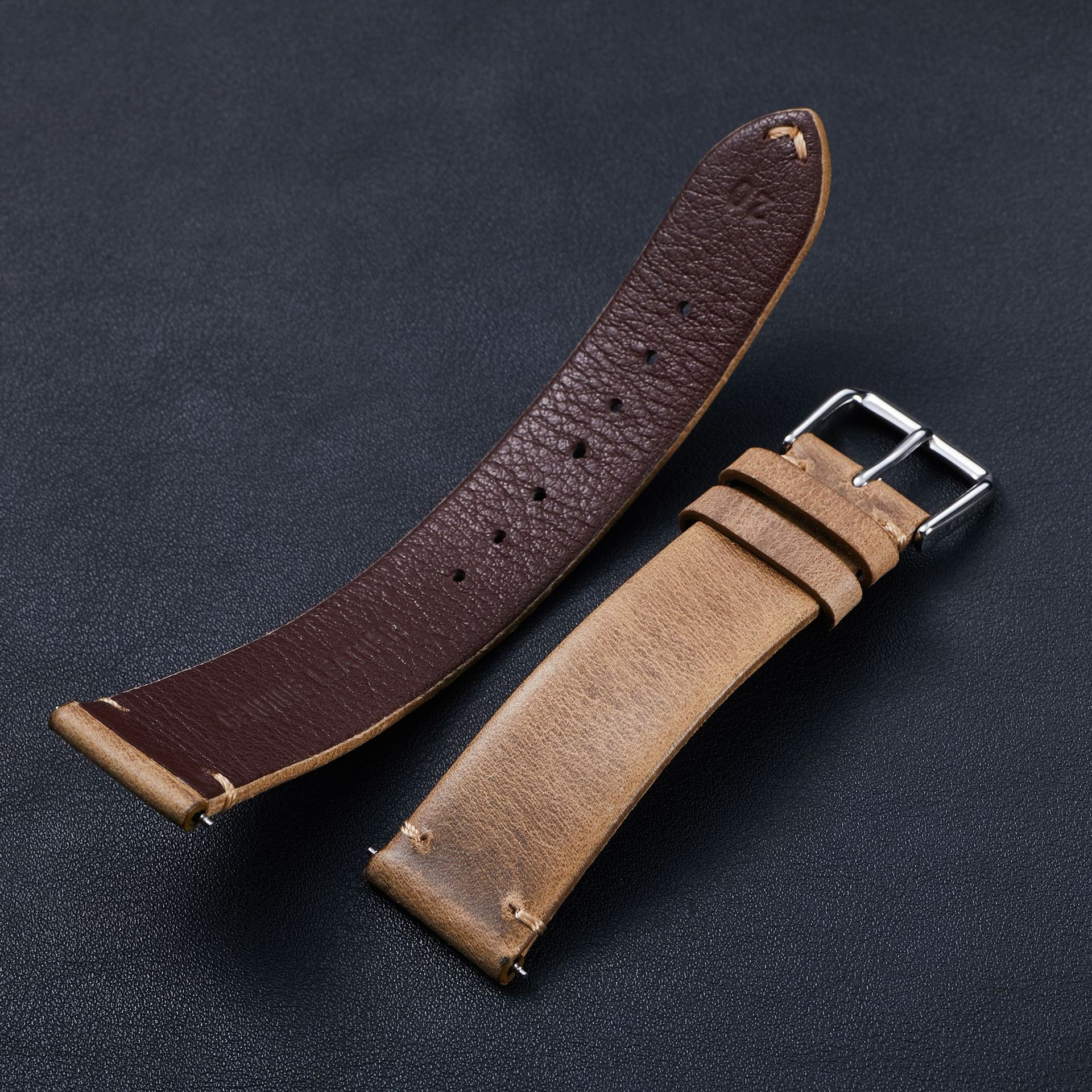 Factory Direct oil wax leather strap soft stitching vintage calf leather strap 18/19/20/21/22mm