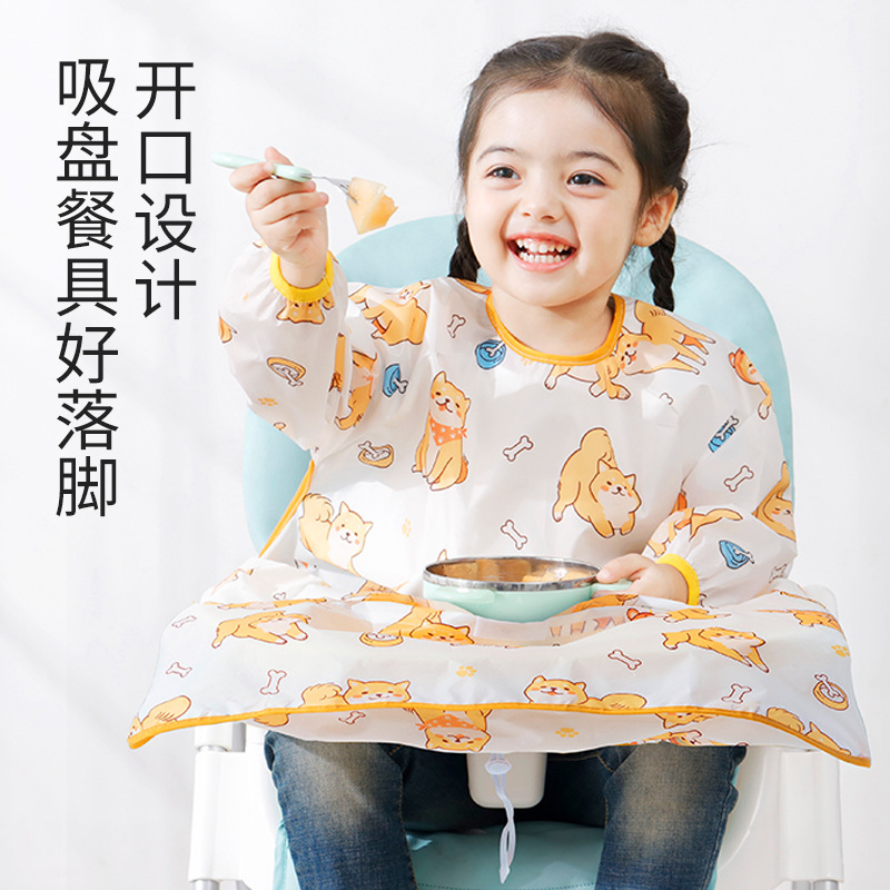 Factory direct one-piece table cover baby eating bib waterproof dirty children's complementary food apron detachable