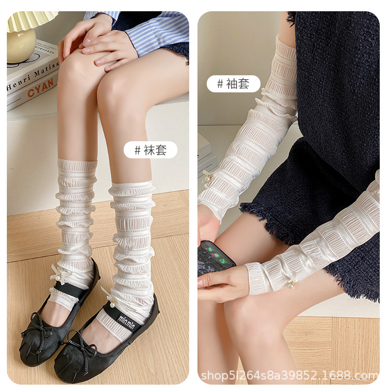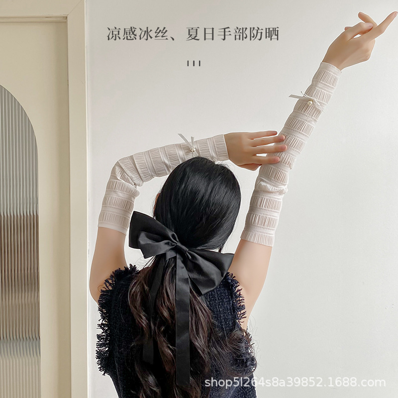 | nameOriginal | Factory direct pearl bow sunscreen sleeves anti-ultraviolet socks women's ice silk thin long tube piled socks for women |
