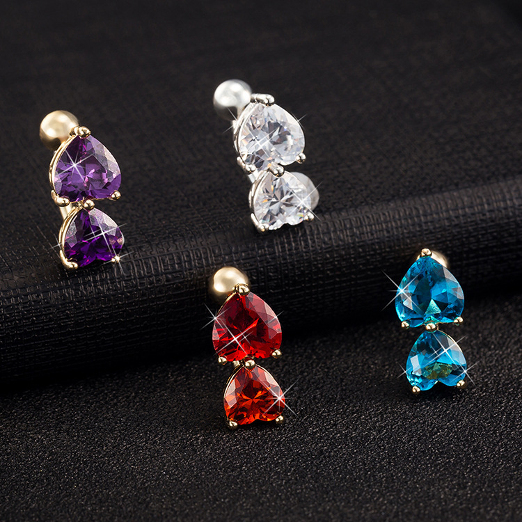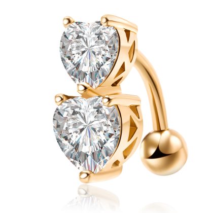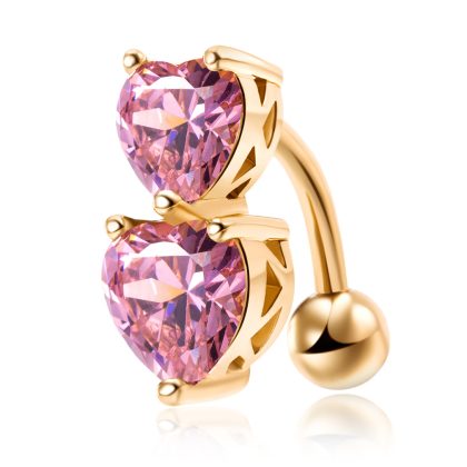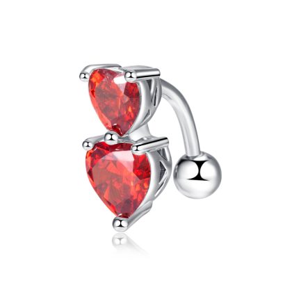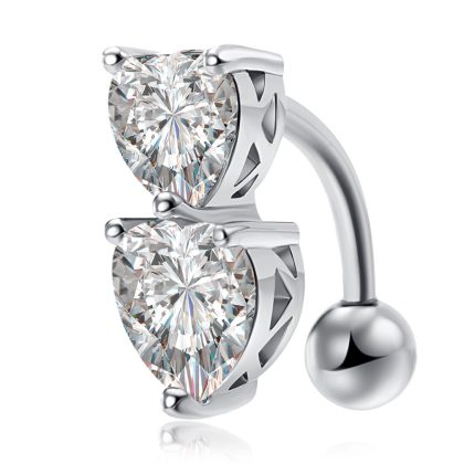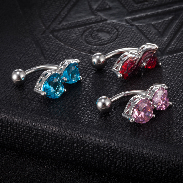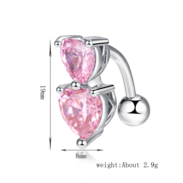 Factory direct puncture navel ornaments European and American personality heart-shaped navel ring double love zircon navel nail navel ring wholesale