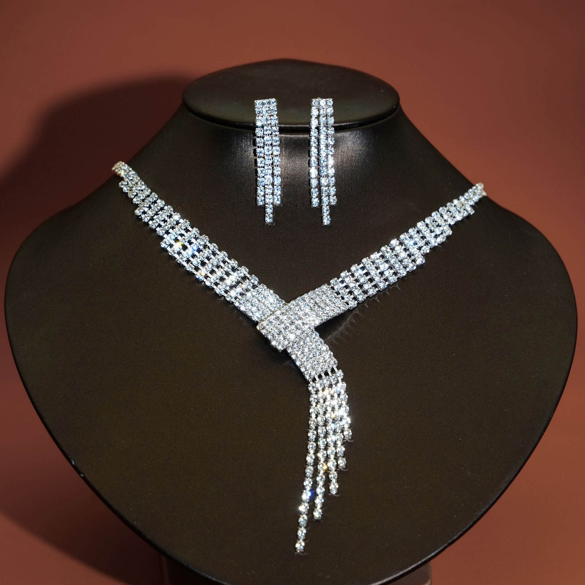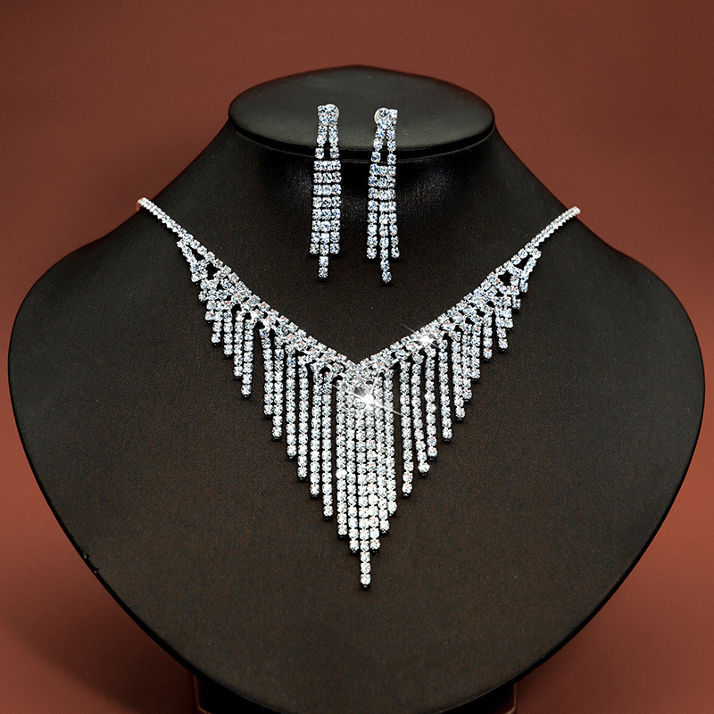 | nameOriginal | Factory direct rhinestone necklace earrings suit Korean tassel clavicle chain full diamond claw chain necklace cross-border necklace |