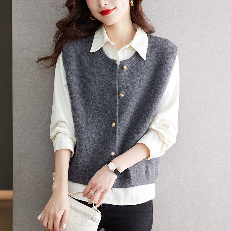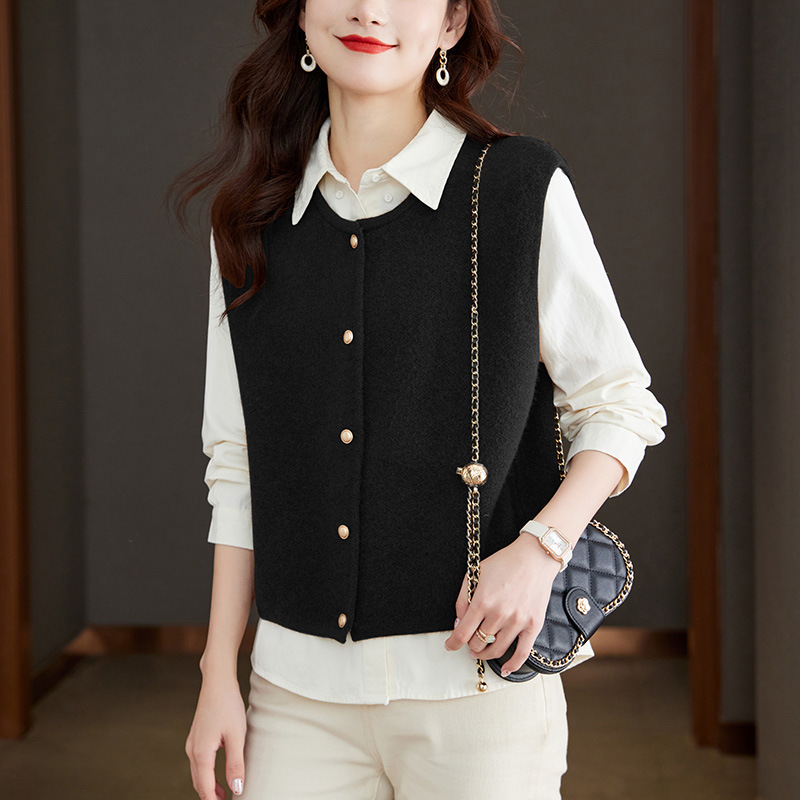 Factory Direct round neck sleeveless vest cardigan stacked waistcoat autumn and winter women’s warm sweater coat knitted outerwear