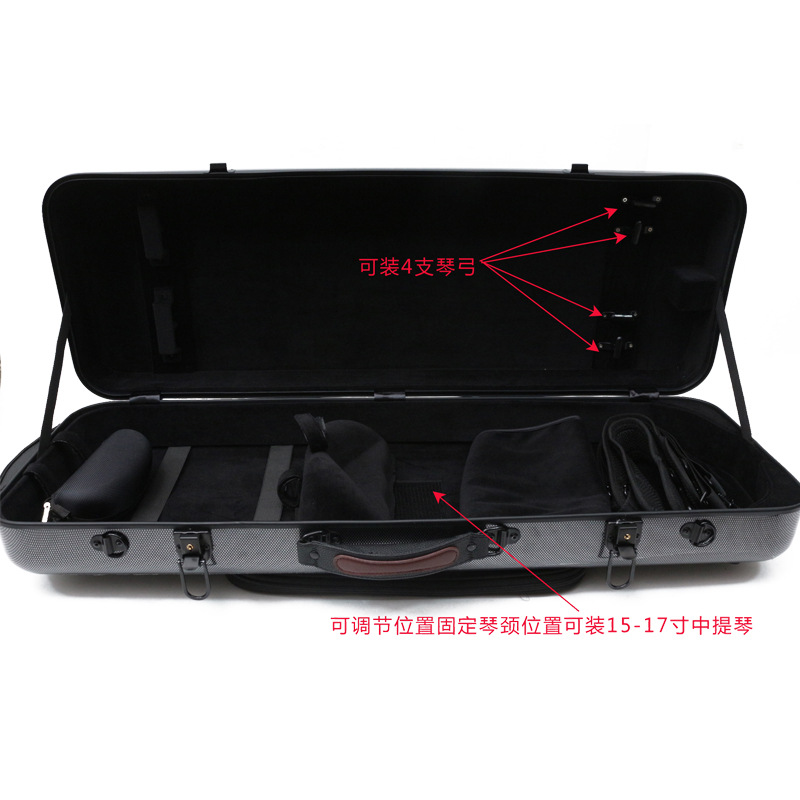 Factory Direct sales high-grade carbon fiber adjustable 15-17 "Viola Plaid piano box wear-resistant pressure-resistant waterproof
