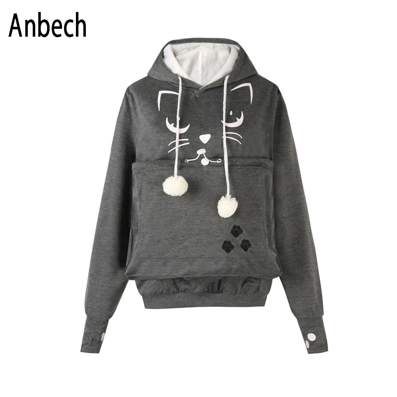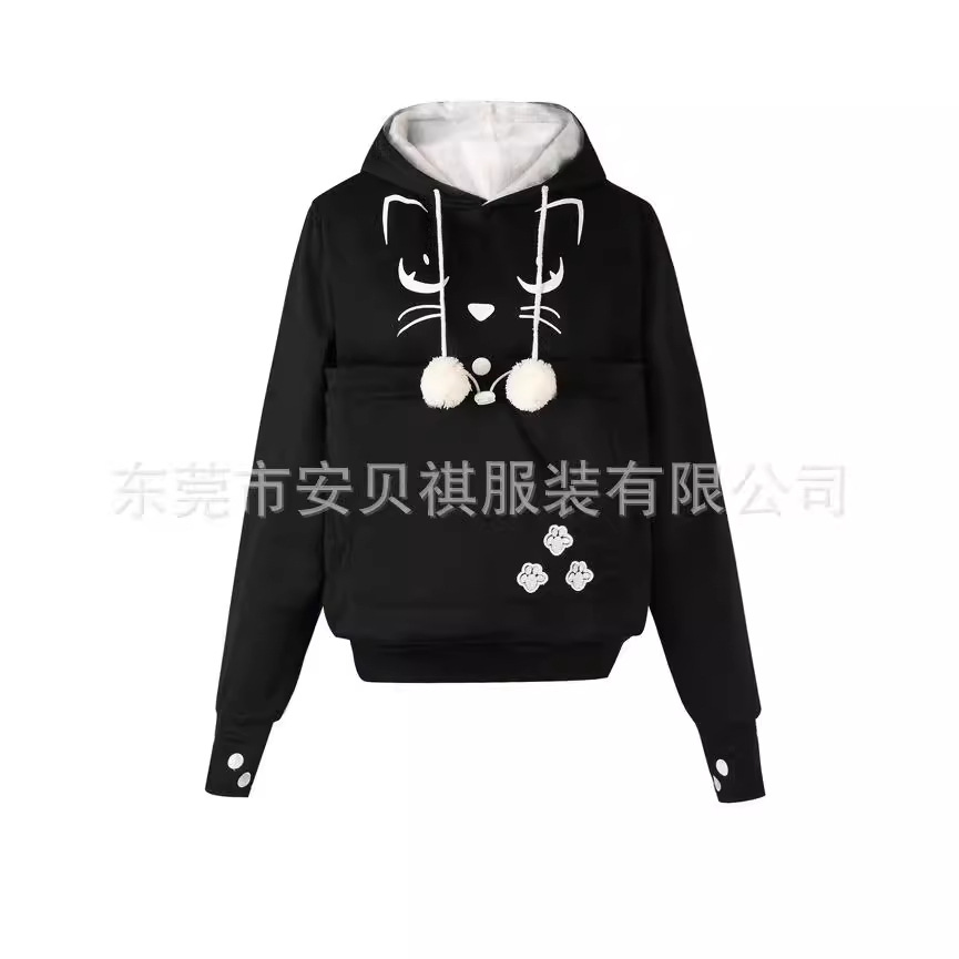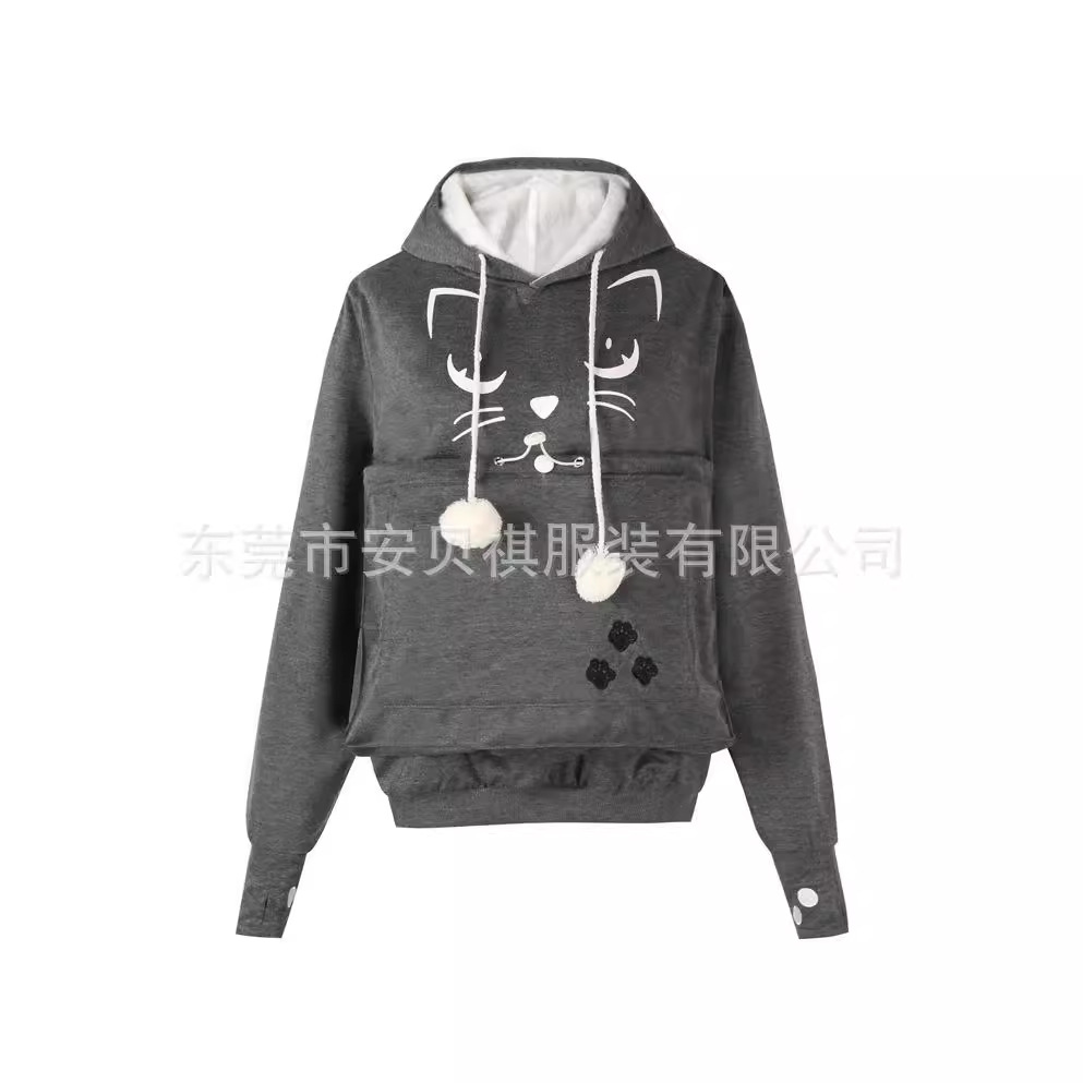 Factory Direct Sales spring and summer hot print cat face big pocket women’s clothing Amazon hot sale cat hooded sweater three generations AA