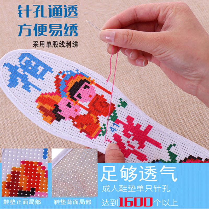 | nameOriginal | Factory direct selling cotton hand-made semi-finished products with Needle Embroidery line printing non-fading cross-stitch insoles new 7D insoles |