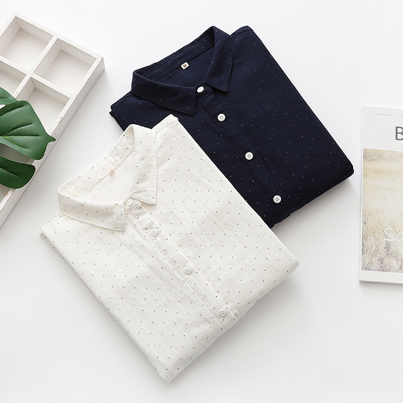| nameOriginal | Factory Direct Summer Cotton Casual Artistic Wave Dot Loose Women's Short-sleeved Shirt Double-layer Yarn Short-sleeved Shirt |