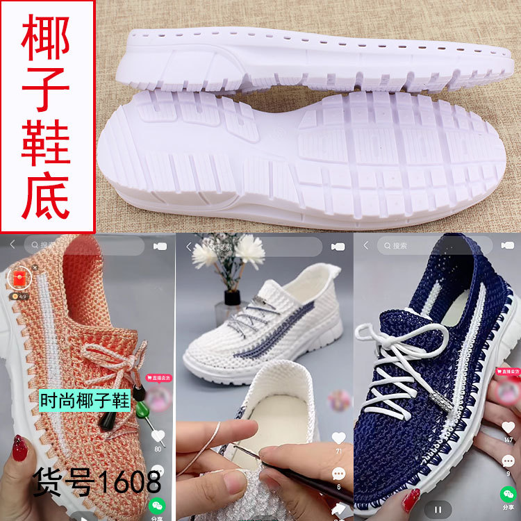 Factory direct supply 1608 new coconut sports sole Crystal bottom beef tendon sole wool woven slippers wholesale