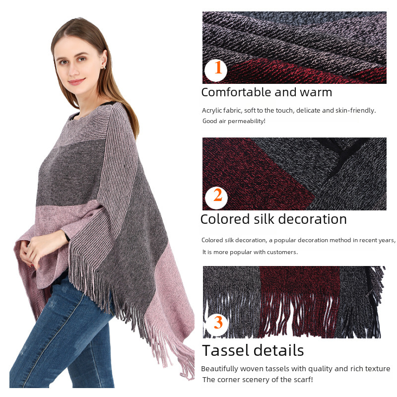 | nameOriginal | Factory Direct Supply Autumn and Winter Knitted Shawl Women's Large Size Spring Pullover Cape Cloak Warm Tassel Cape poncho |