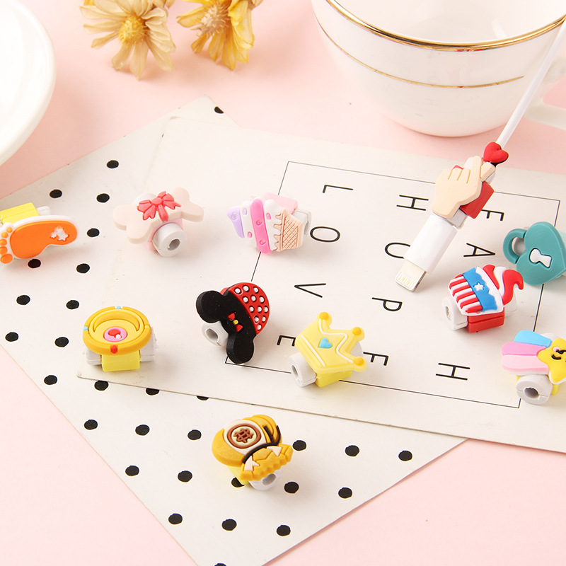 Factory direct supply cartoon Apple charger data cable protective sleeve earphone line anti-fracture protector wholesale customization