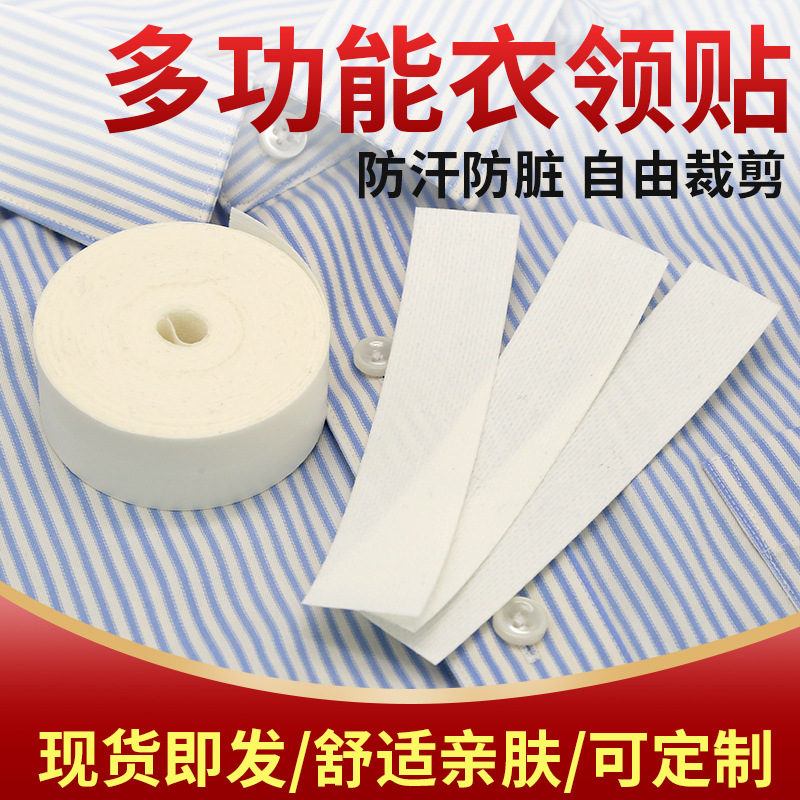| nameOriginal | Factory direct supply disposable anti-dirty collar stickers whole roll coat hat stickers collar shirt stickers military training invisible sweat-absorbent stickers |