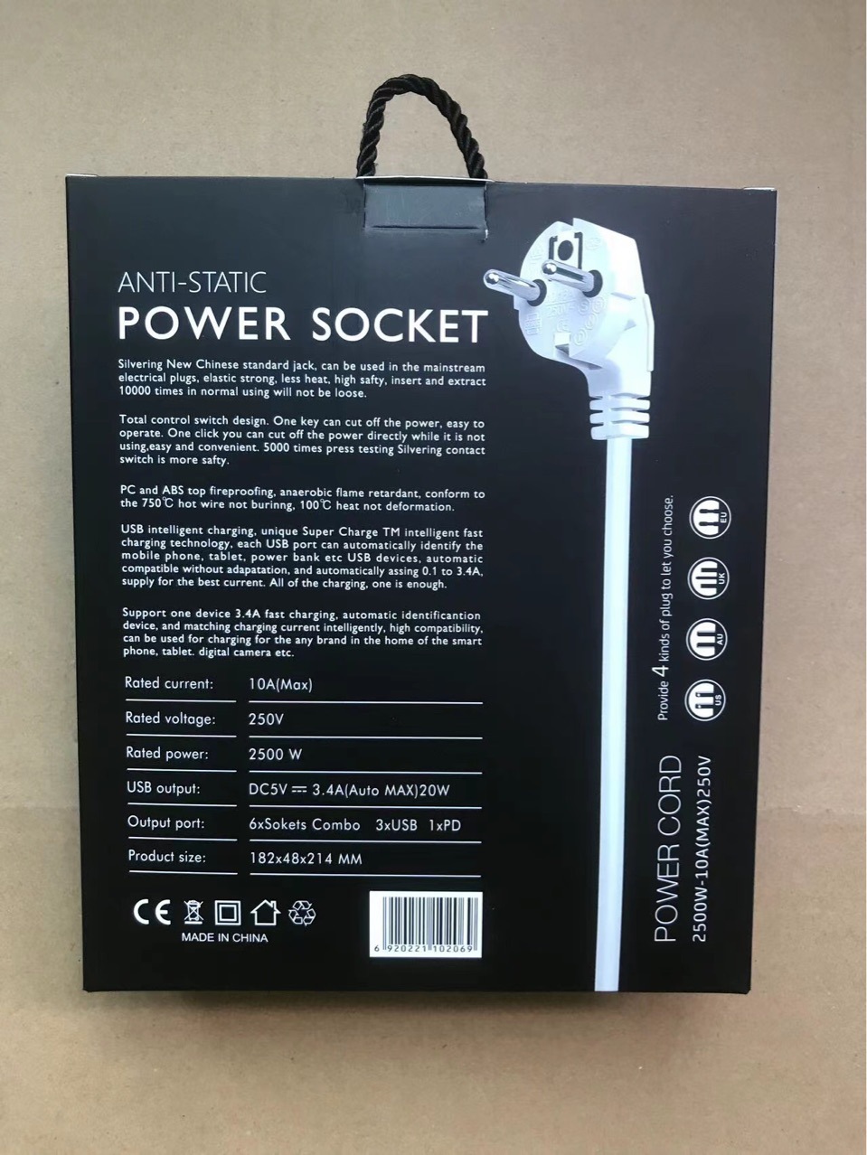 | nameOriginal | Factory direct supply explosion plug board multi-function plug T-U08 British European black power strip |