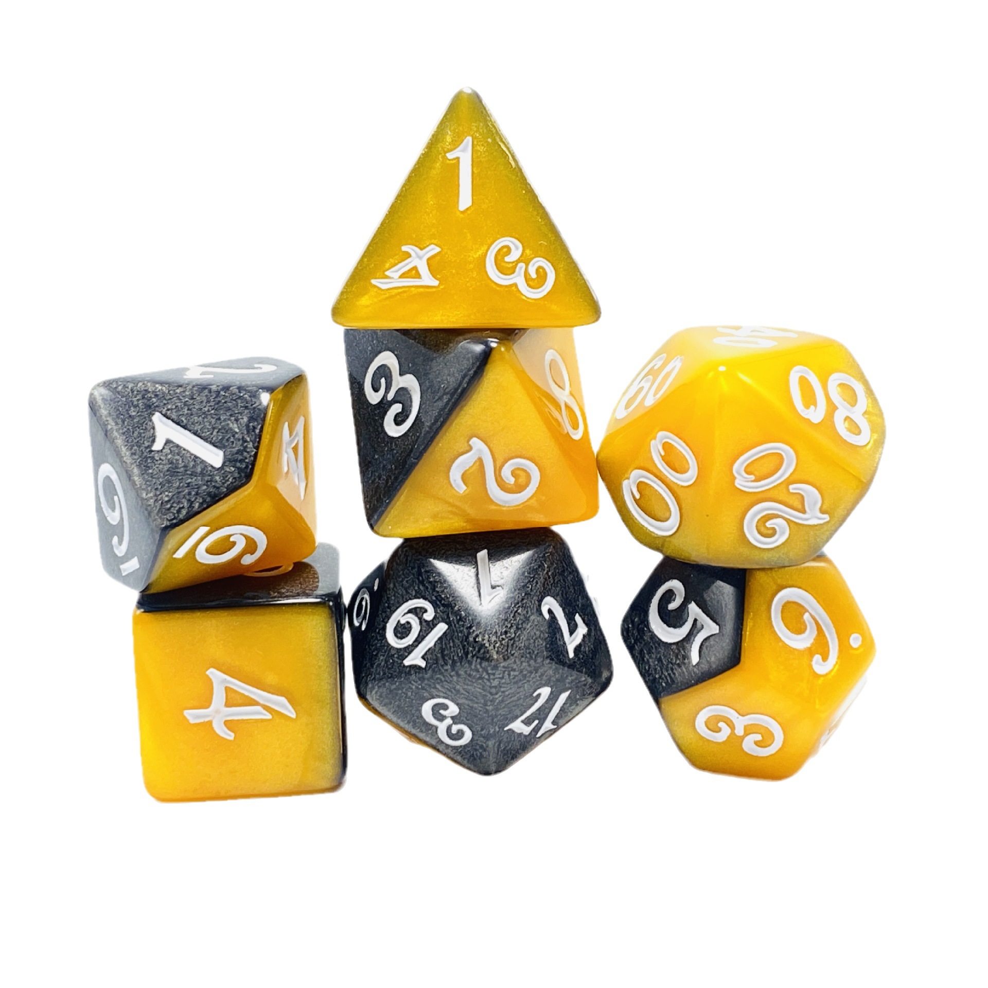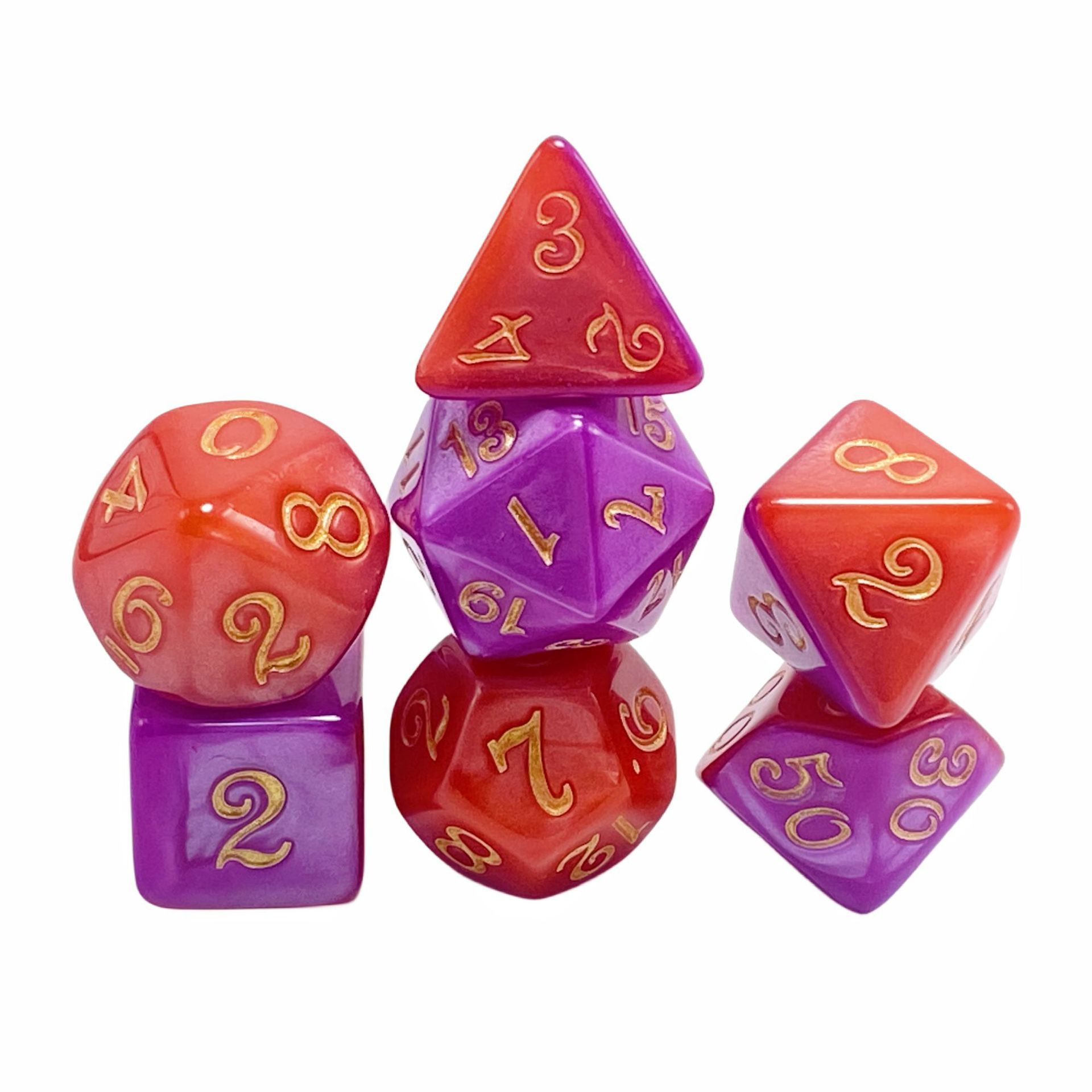 | nameOriginal | Factory direct supply multi-sided mixed two-color layered table game DND seven-grain 4-20-sided running group multi-sided acrylic dice |
