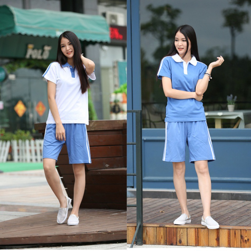 Factory direct supply of Shenzhen school uniforms for primary and secondary school students summer short sleeve slim fit school uniforms shorts sports suits class clothes