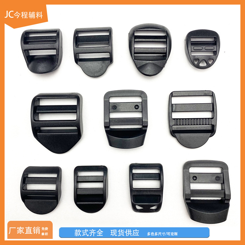 | nameOriginal | Factory direct supply plastic hook buckle webbing adjustment four block buckle backpack black and white trapezoidal flat buckle luggage accessories |