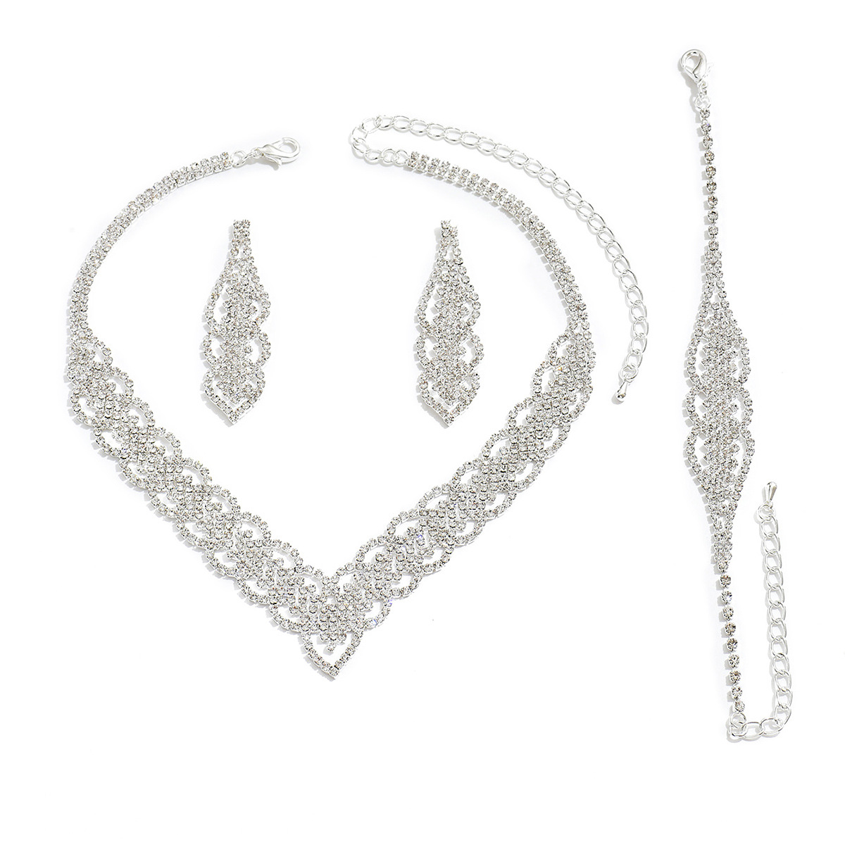 | nameOriginal | Factory Direct supply rhinestone necklace earrings bracelet three-piece set bridal wedding evening party accessories necklace wholesale |