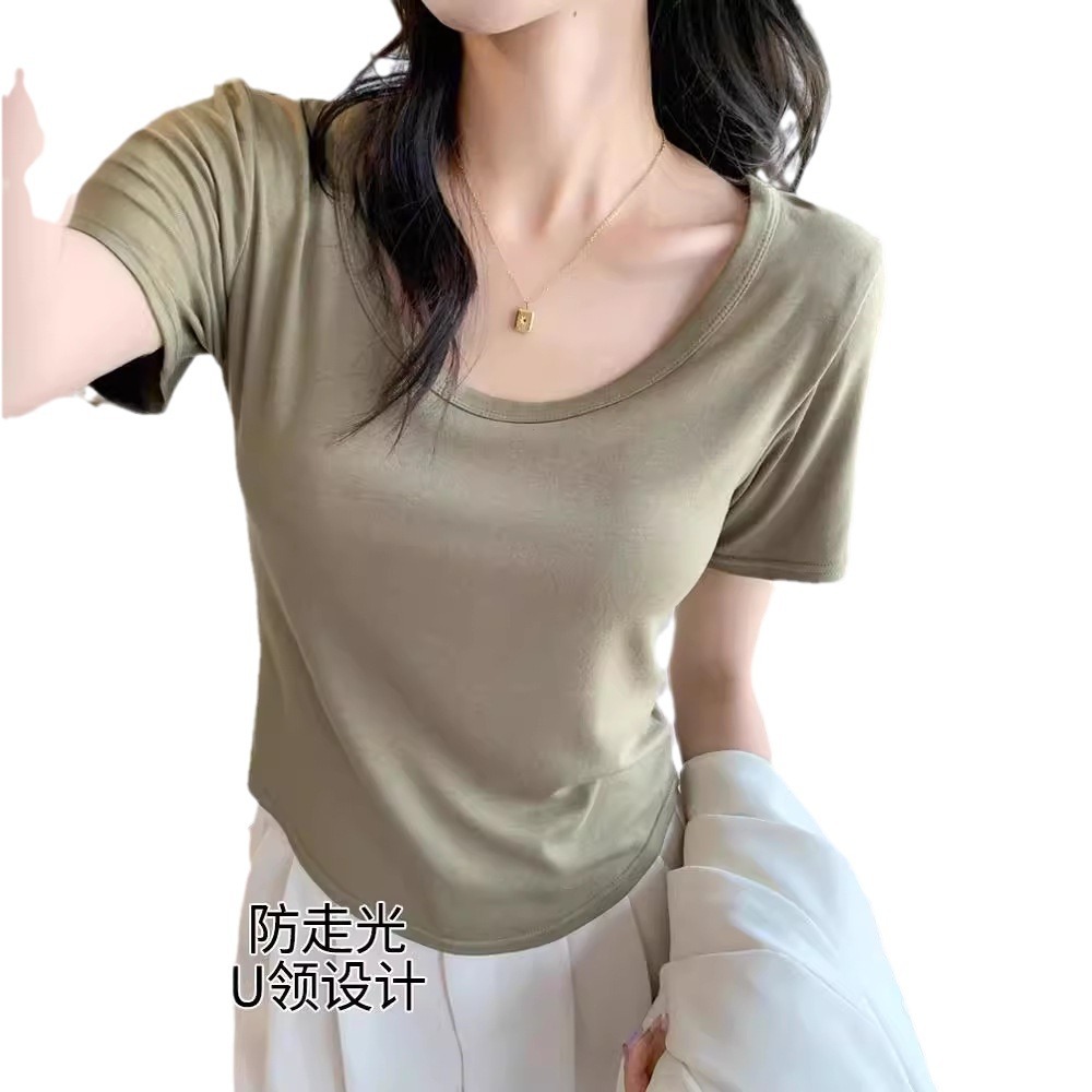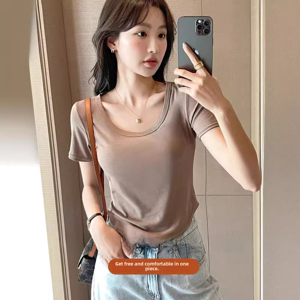 Factory Direct TikTok Explosions Spring and Summer Short-sleeved T-shirt Women's Outer Wear Slim-fit Slimming Inner Base T-shirt Top ins