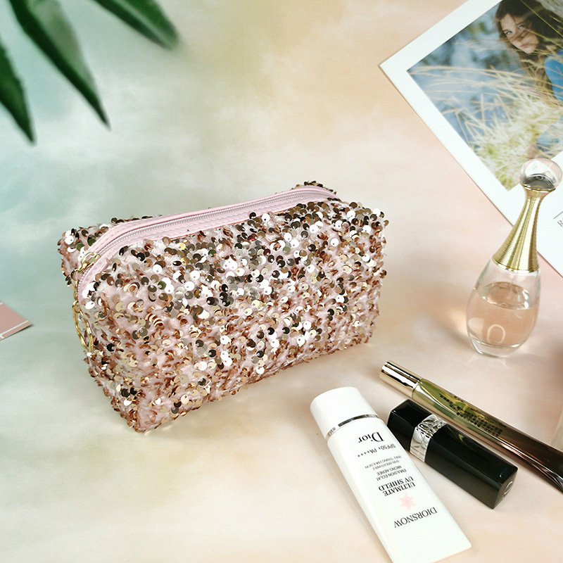 Factory goods embroidered sequins cosmetic bag Fashion Women’s INS travel storage bag exquisite large capacity portable wash bag wholesale