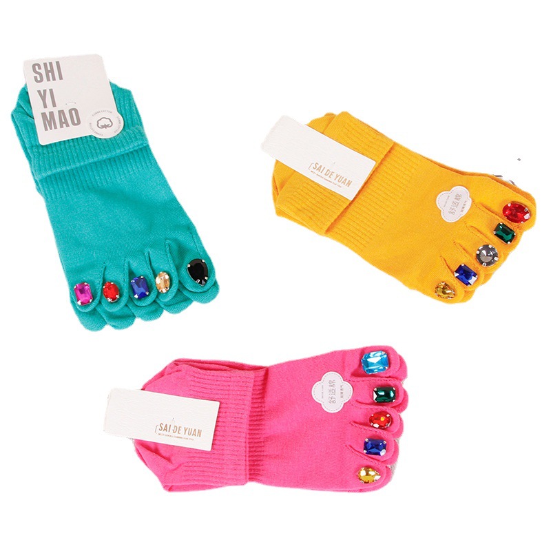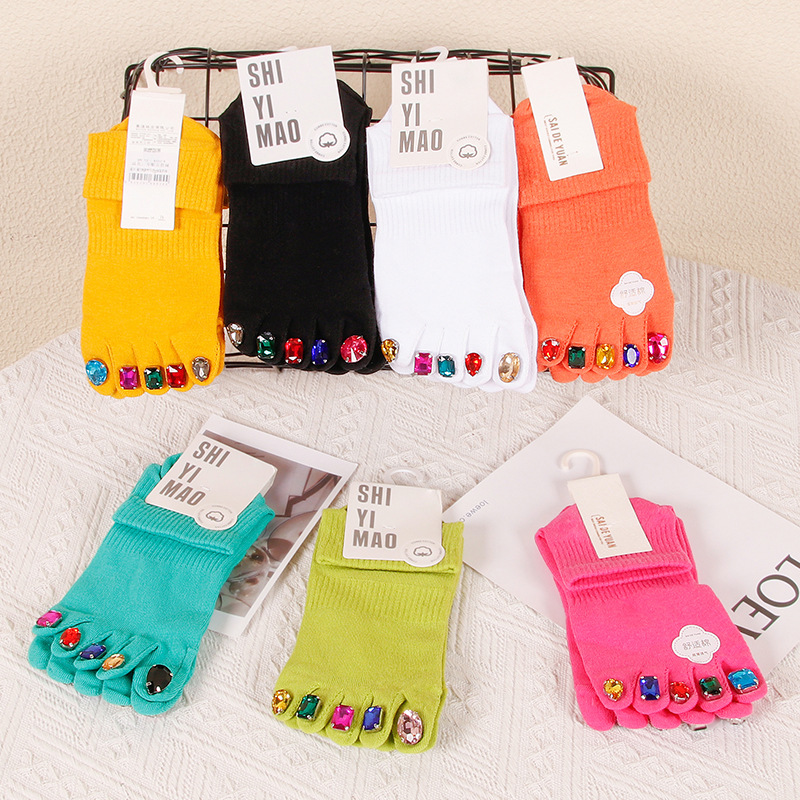 Factory Goods Shiny Crystal Toe Five-Finger Socks Children's Middle Barrel Thanos Nail Art Personalized DIY Drill Toe Socks