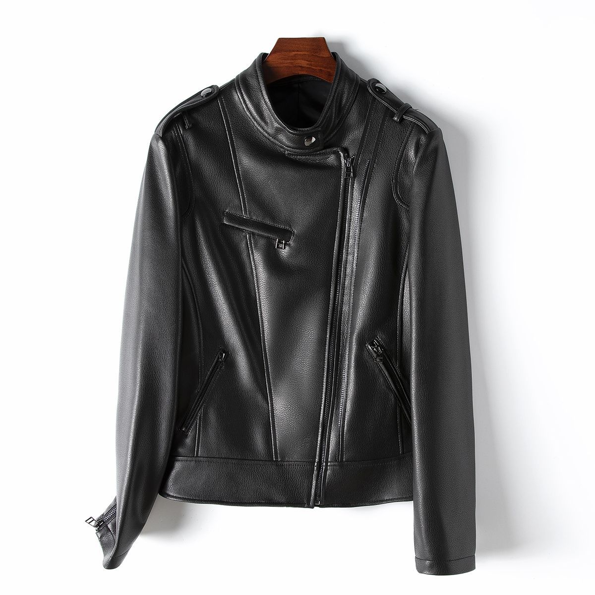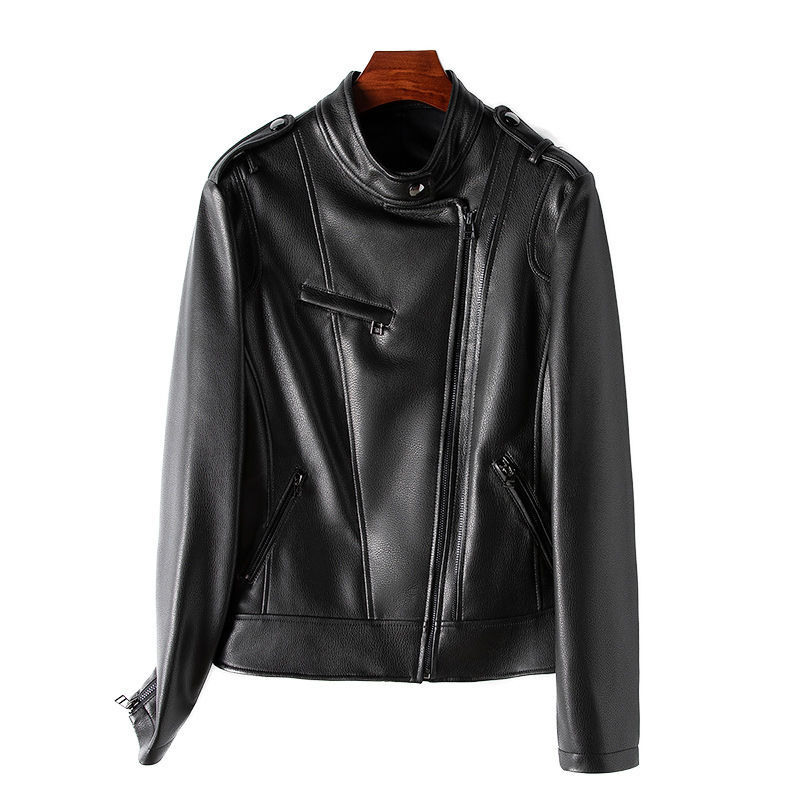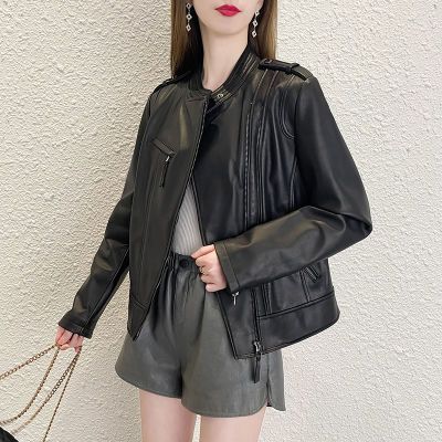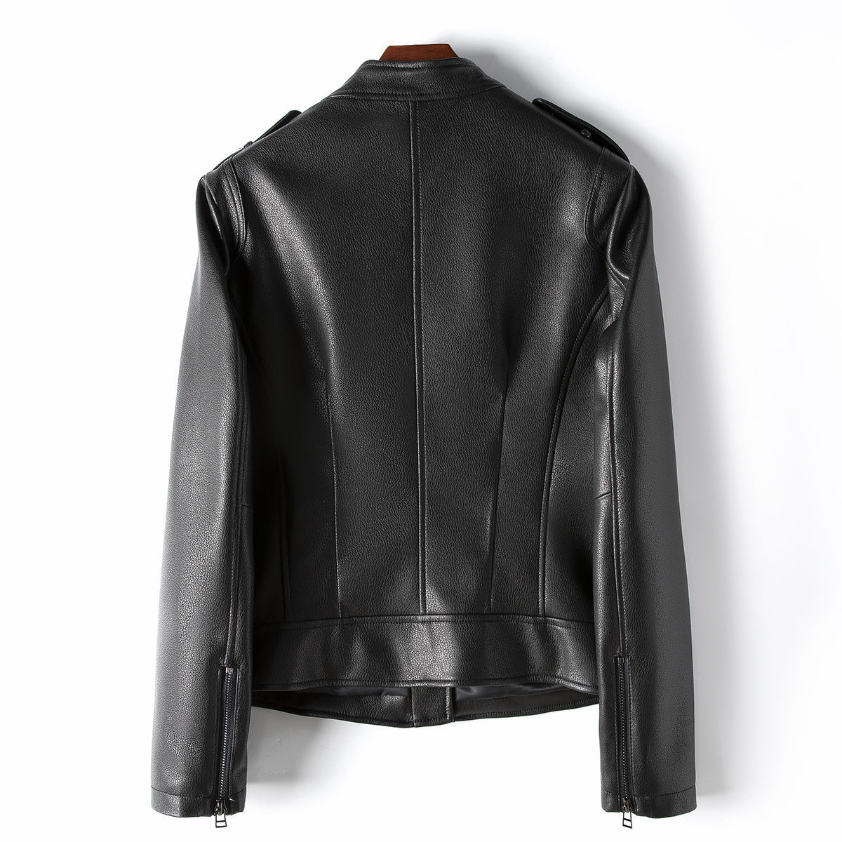 | nameOriginal | Factory in stock 2024 Haining sheepskin leather coat spring new motorcycle style slim stand collar jacket female F |