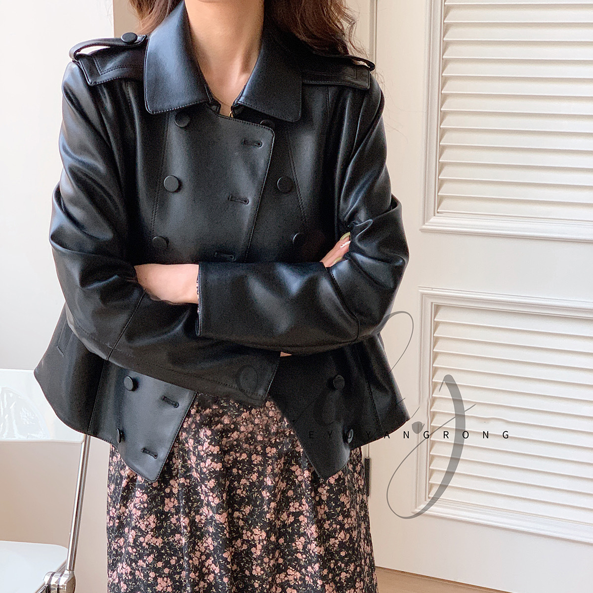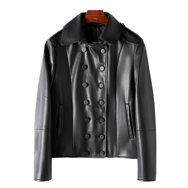 | nameOriginal | Factory in stock Haining New lapel sheepskin leather coat 2024 spring women's double breasted leather jacket coat F |