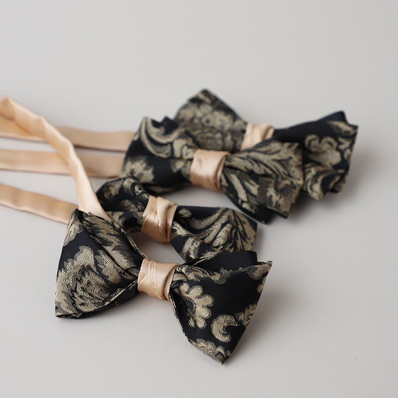 | nameOriginal | Factory in stock wholesale retro luxury ancient black gold banquet reception groom host bow tie men gentleman bow tie |
