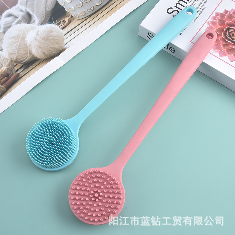 Factory new direct dopamine color silicone long handle cross-border men's and women's mud back massage brush soft hair bath brush