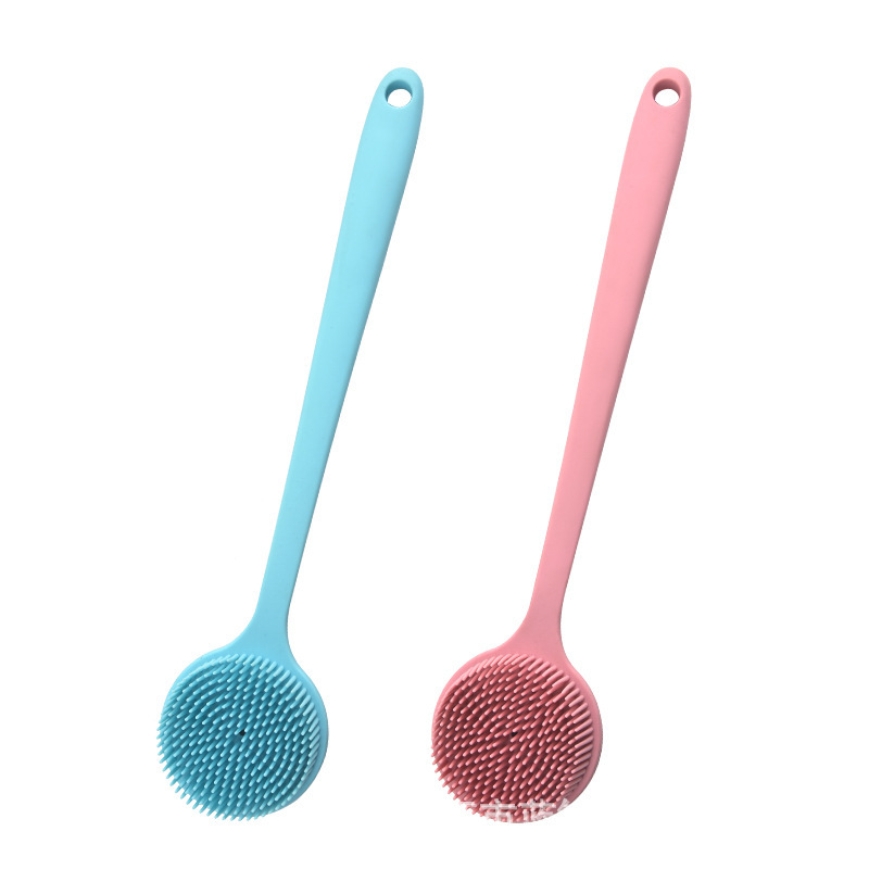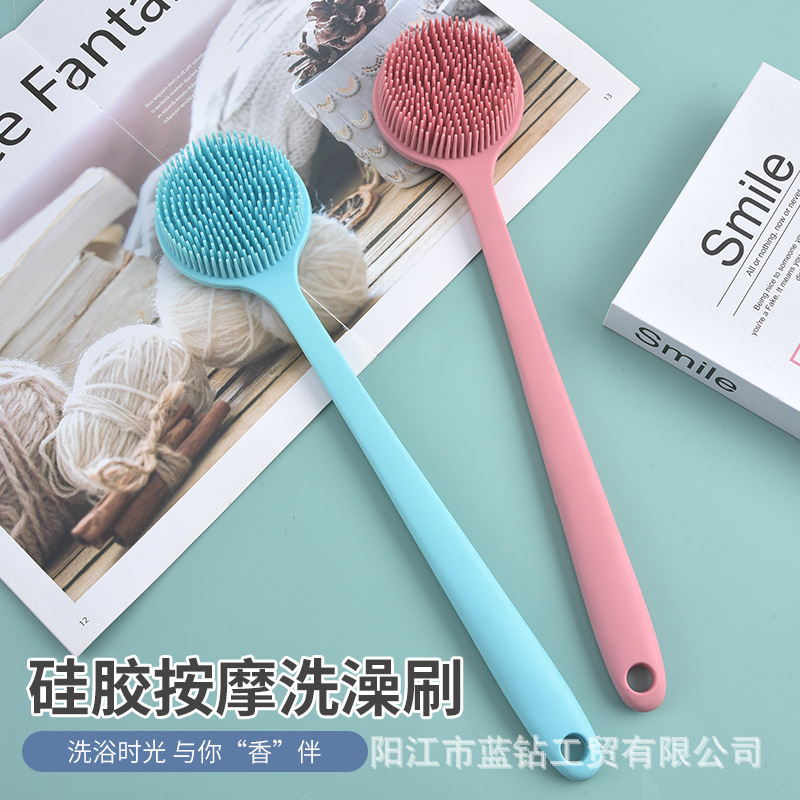 Factory new direct dopamine color silicone long handle cross-border men’s and women’s mud back massage brush soft hair bath brush