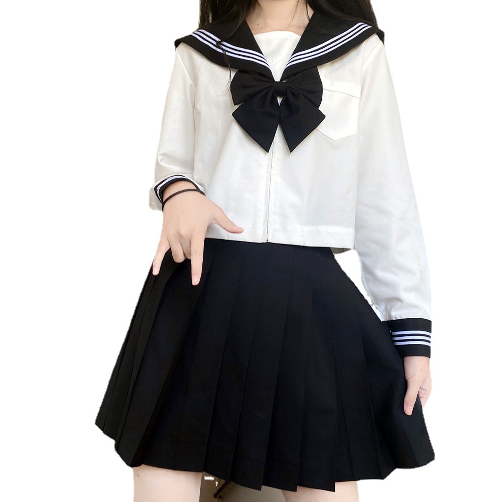 Factory original black collar White three basic sailor suit Orthodox JK uniform Middle suit Japanese class uniform school uniform women