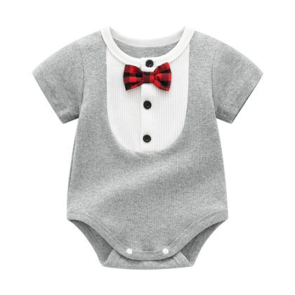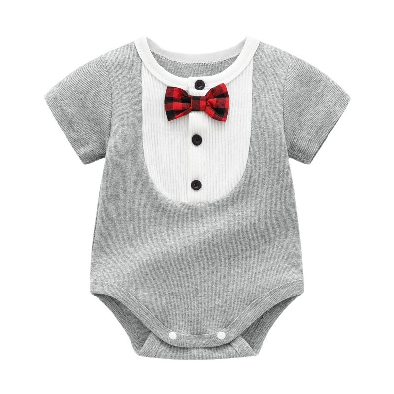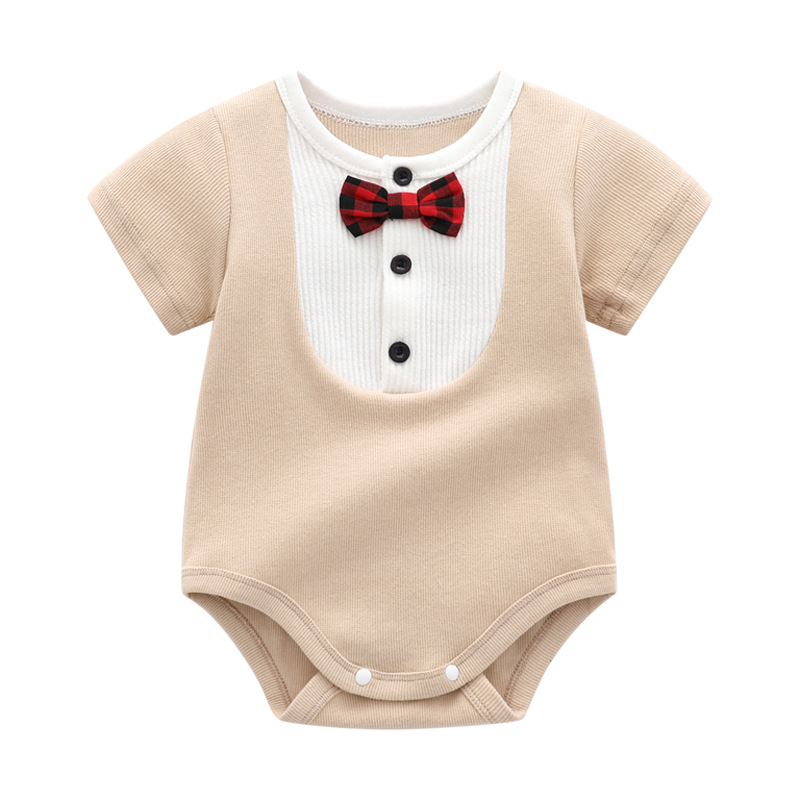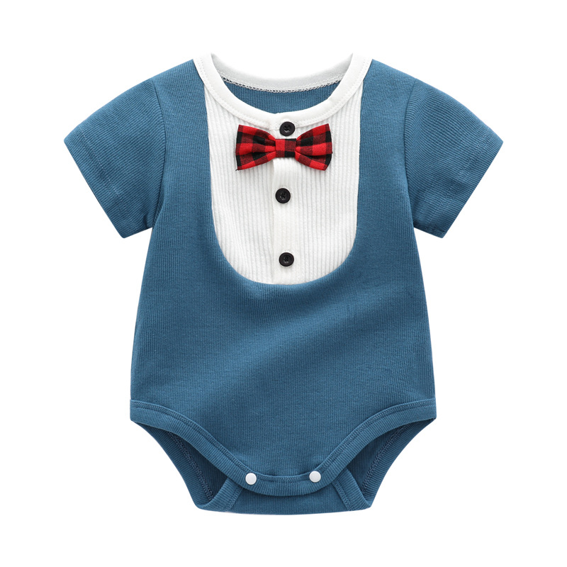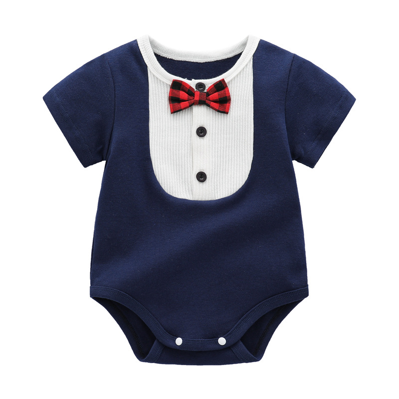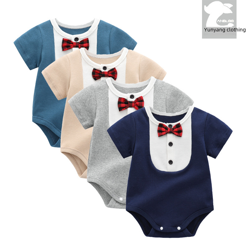 | nameOriginal | Factory spot newborn round neck contrast color short sleeve wrap fart clothing men's baby Summer Bow Tie Gentleman triangle climbing suit |