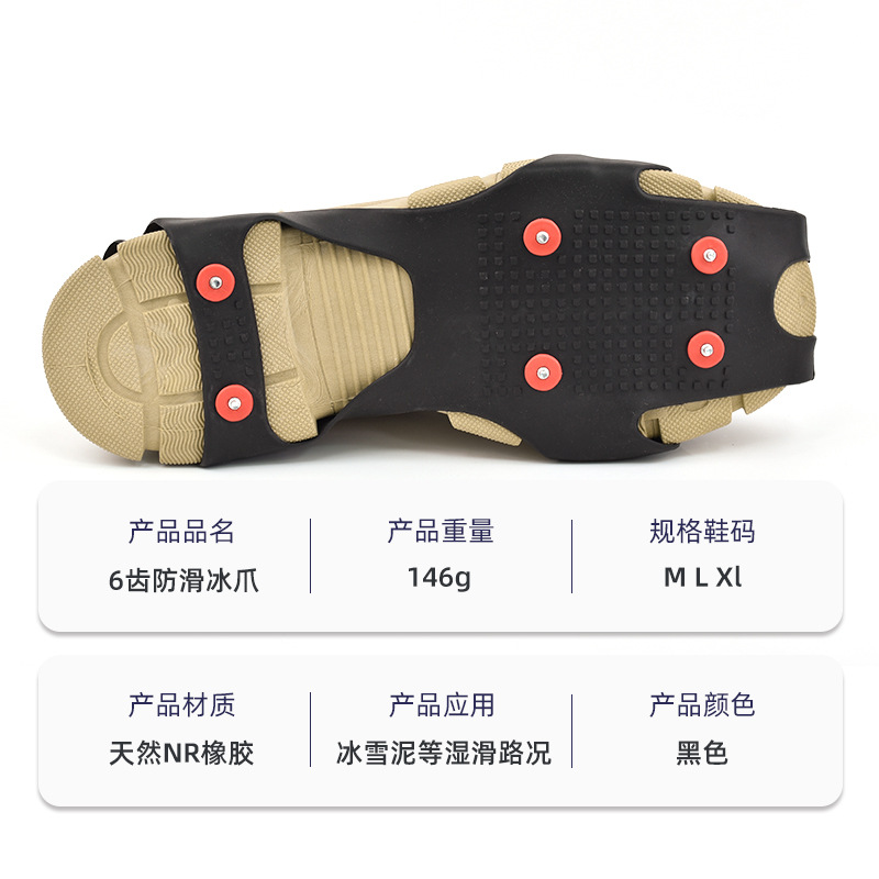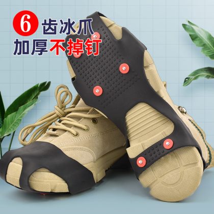 Factory spot rubber 6-nail ice claw non-slip shoe cover snow climbing ice claw thickened wear-resistant 6-tooth spiked shoes
