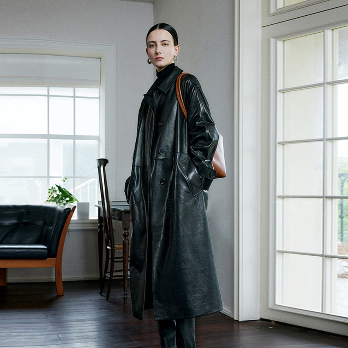 | nameOriginal | Factory Spot Spring Haining New Genuine Leather 2024 Women's Over-the-Knee Long Dress Collar Leather Coat Coat |