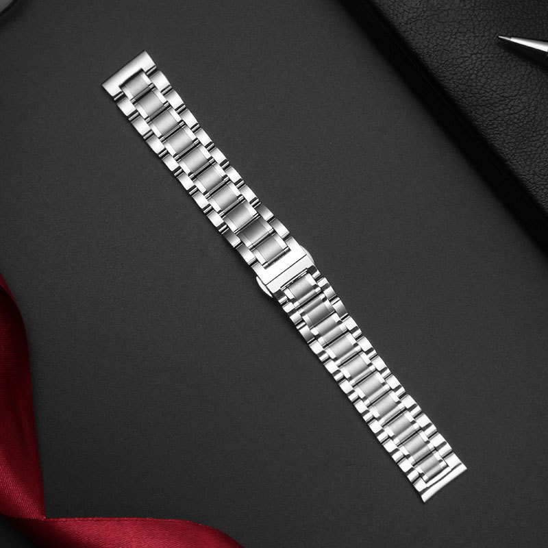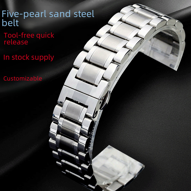 Factory spot wholesale 20mm all-steel solid five beads metal steel strap double press butterfly buckle a generation of hair
