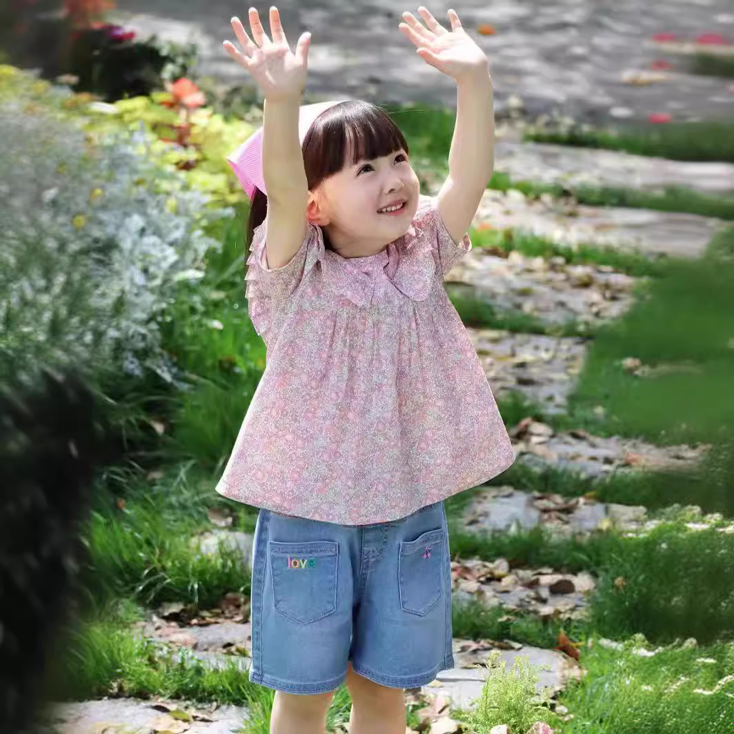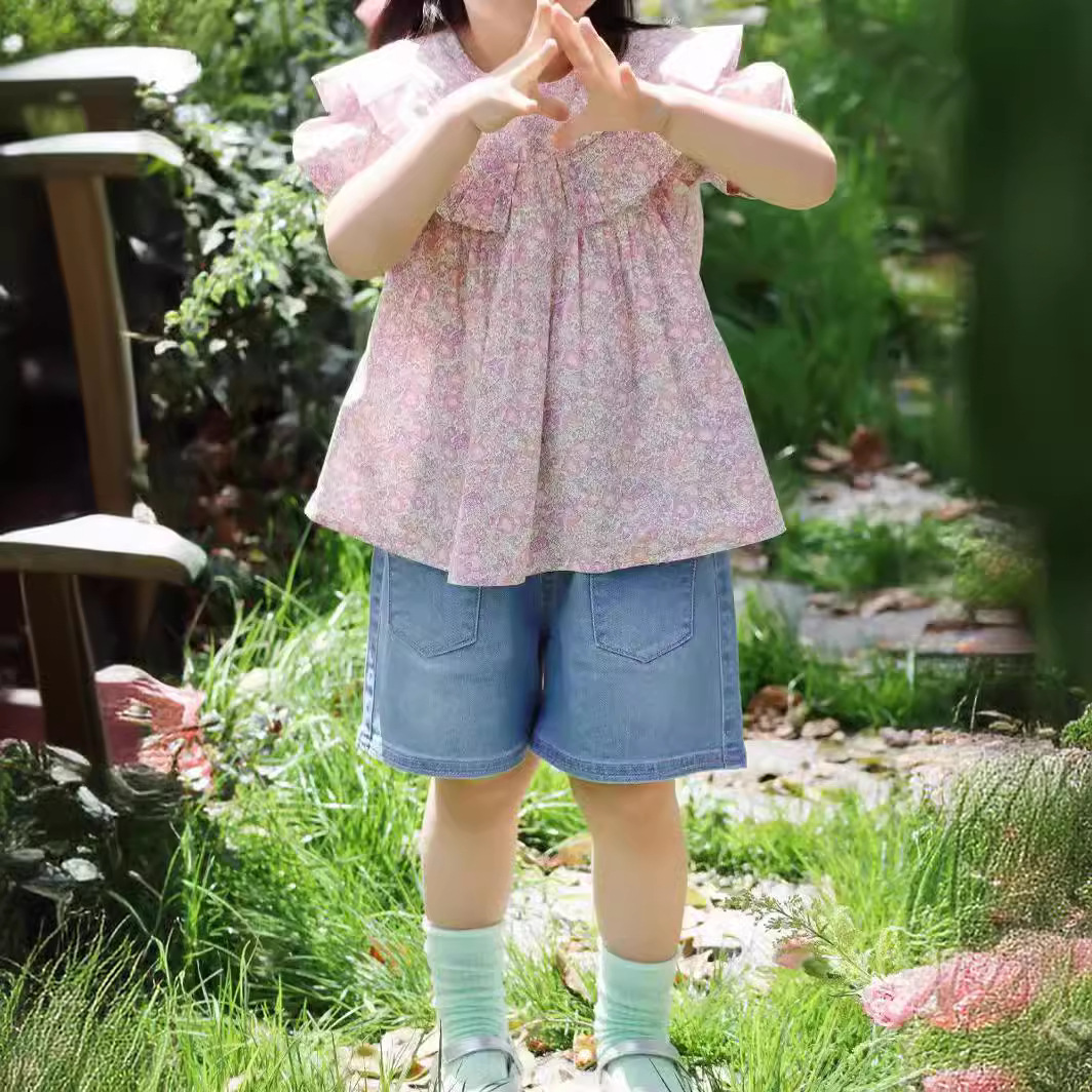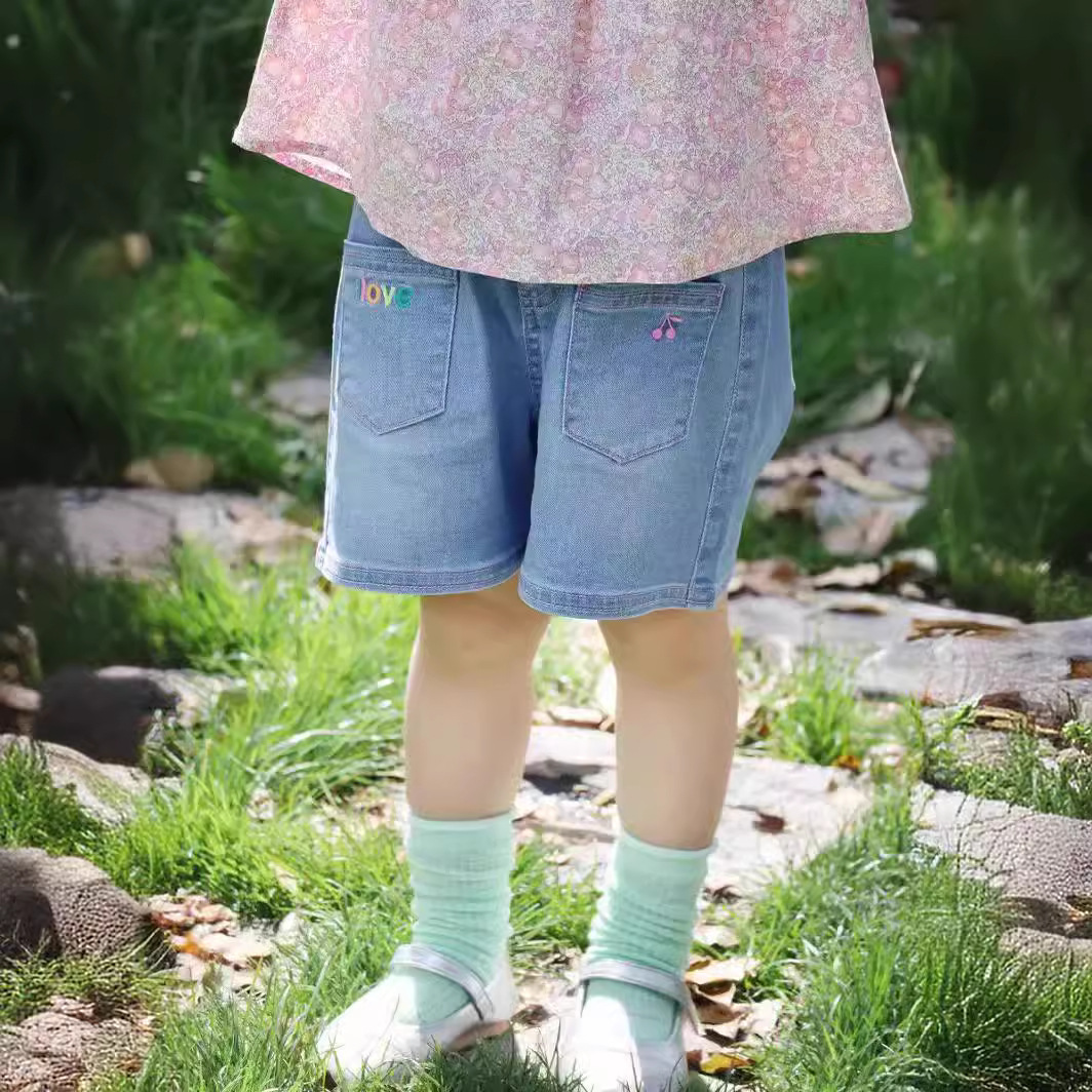 Factory Spring Summer Girl All Match Casual Blue Cropped Pants Summer Kids Comfortable Cotton Stretch Denim Shorts