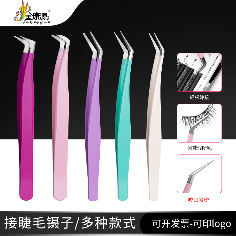 Factory Stainless Steel High Density Eyelash Tweezers Grafting Eyelash Gold Feather Clip Dolphin Clip Elbow Tweezers Blossom Tweezers